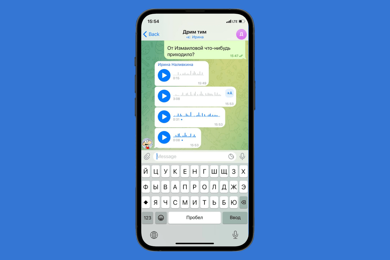 Давать себе по рукам, когда хочется записать голосовое, особенно критично для руководителей: задачи сотрудникам корректнее ставить только в письменном виде, чтобы их всегда можно было держать перед глазами. Переслушивать несколько раз ТЗ в сообщении на семь минут — трата драгоценного времени ваших подчиненных. Если без этого совсем никак не обойтись — ведите рабочую переписку в Telegram и оплатите сотрудникам подписку на Premium, тогда ваши аудиосообщения они смогут переводить в текст.