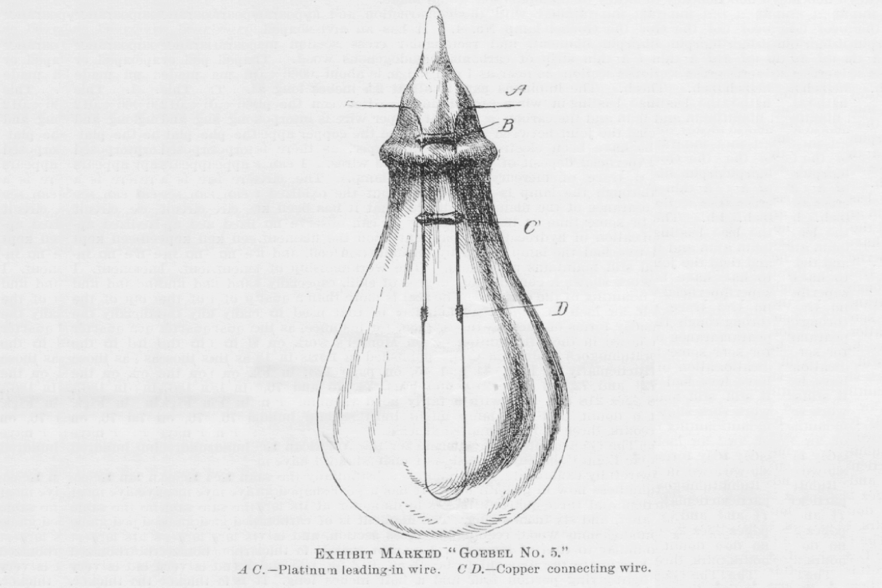 Наконец, среди европейских ученых того времени можно отметить немца Генриха Гебеля. Его изобретение считается прототипом первой лампочки. Гебель использовал в качестве электрода бамбуковую нить, помещая ее в вакуум колбы, где она могла гореть больше ста часов.