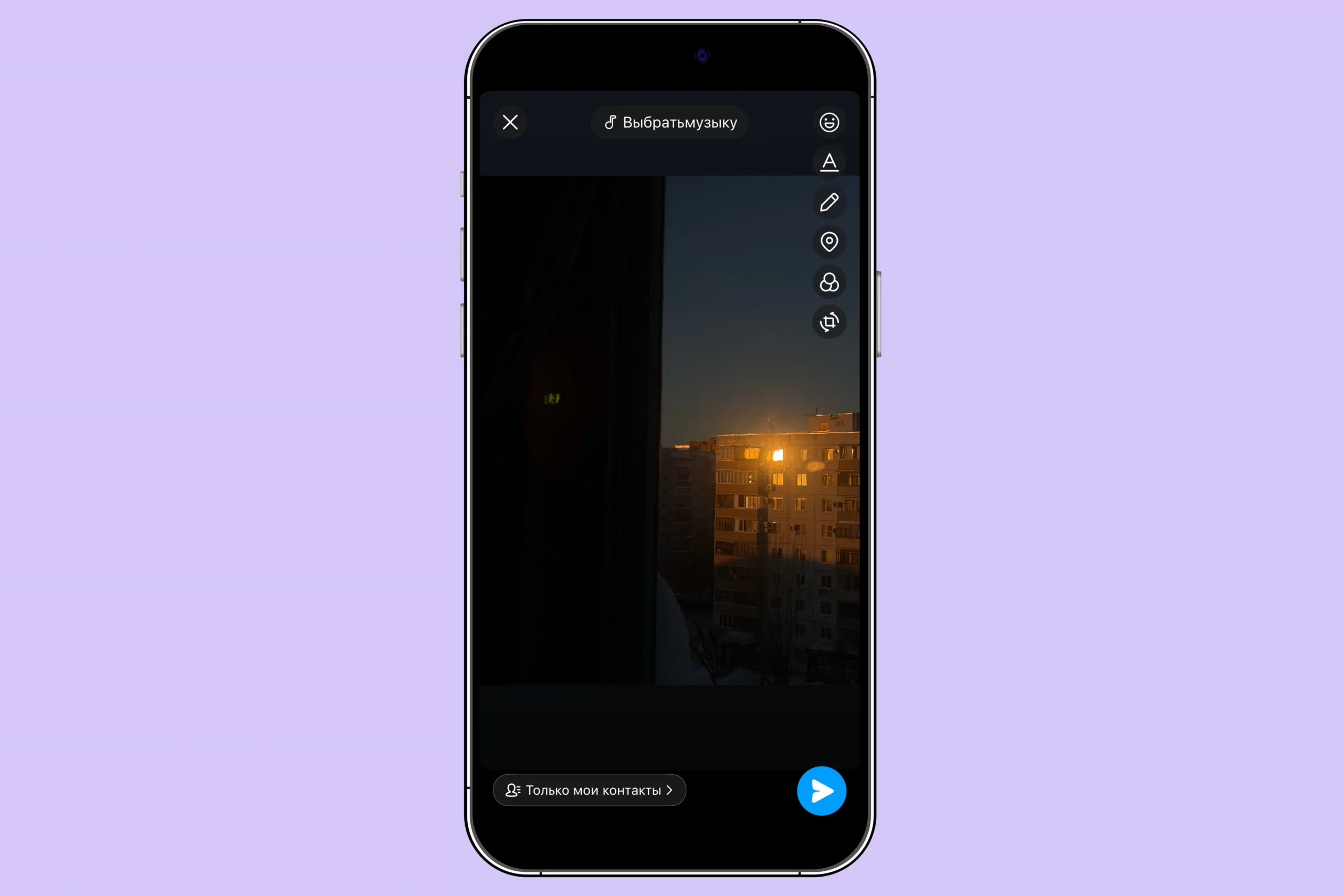 Чтобы сделать публикацию, достаточно нажать на значок камеры в левом верхнем углу