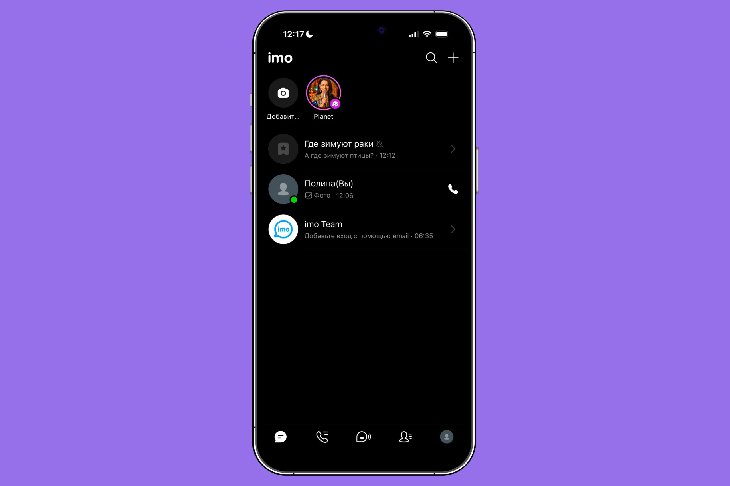 Как мы уже сказали, в imo есть все, что есть в других мессенджерах: чаты, каналы, звонки. Но не только это. Рассказываем, как устроено приложение и какие у него функции.