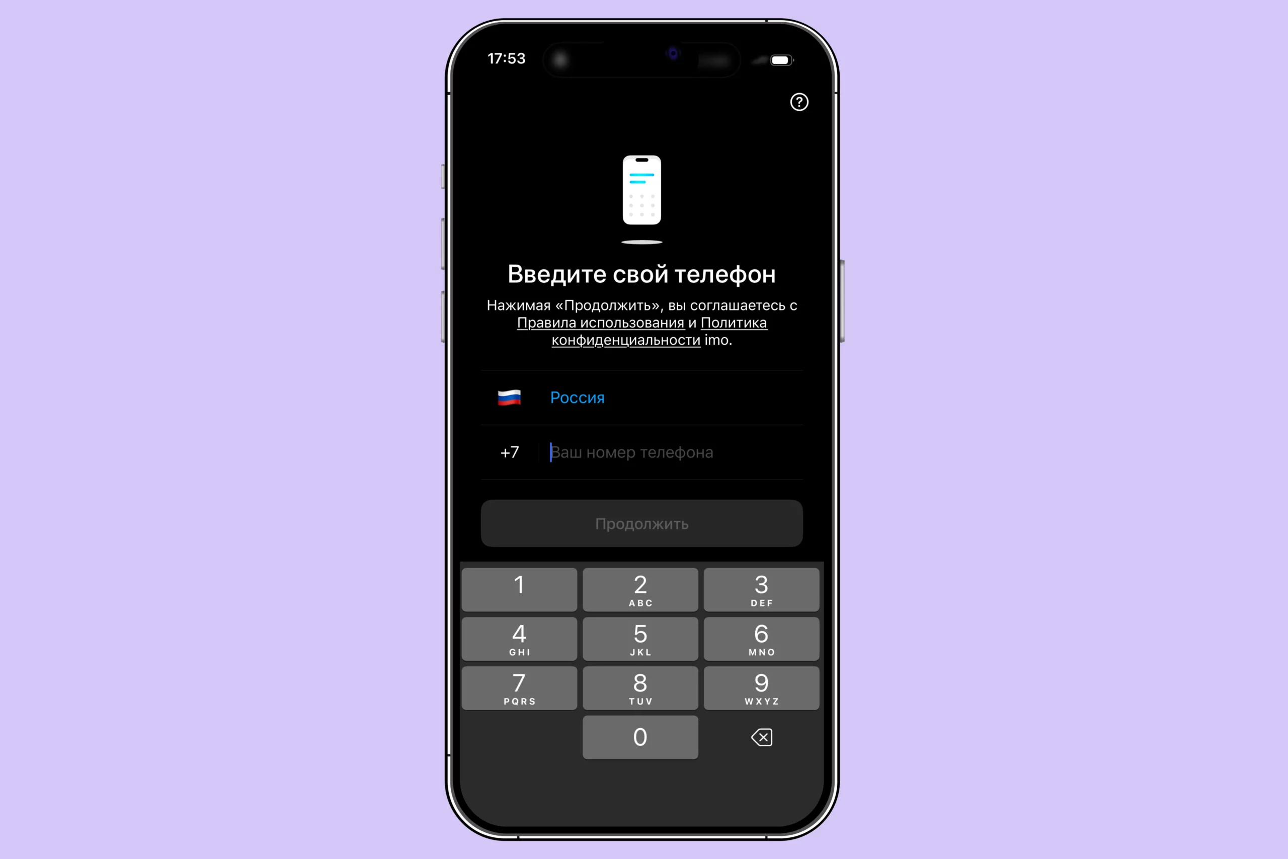 - Откройте imo и введите номер телефона. Ваша страна будет указана автоматически.