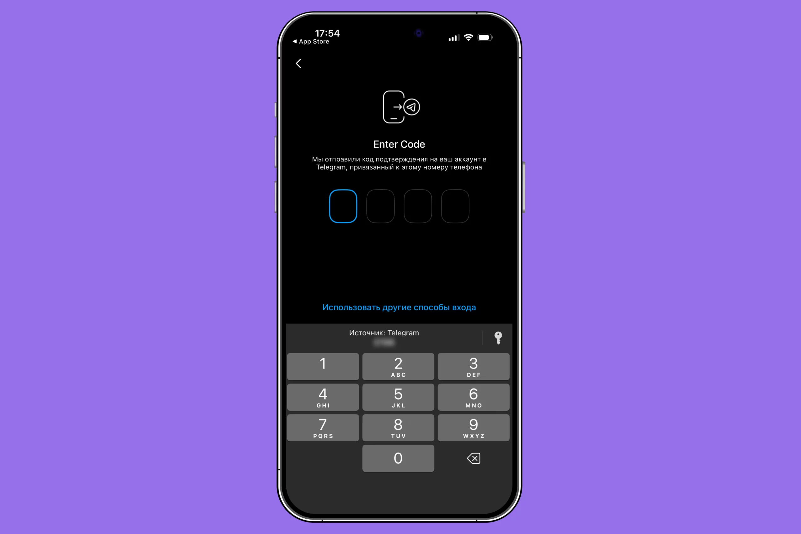 - Подождите, пока придет проверочный код. С российскими номерами проблем нет: код обычно приходит по SMS; у части пользователей он может отображаться и в Telegram, если номер к нему привязан.