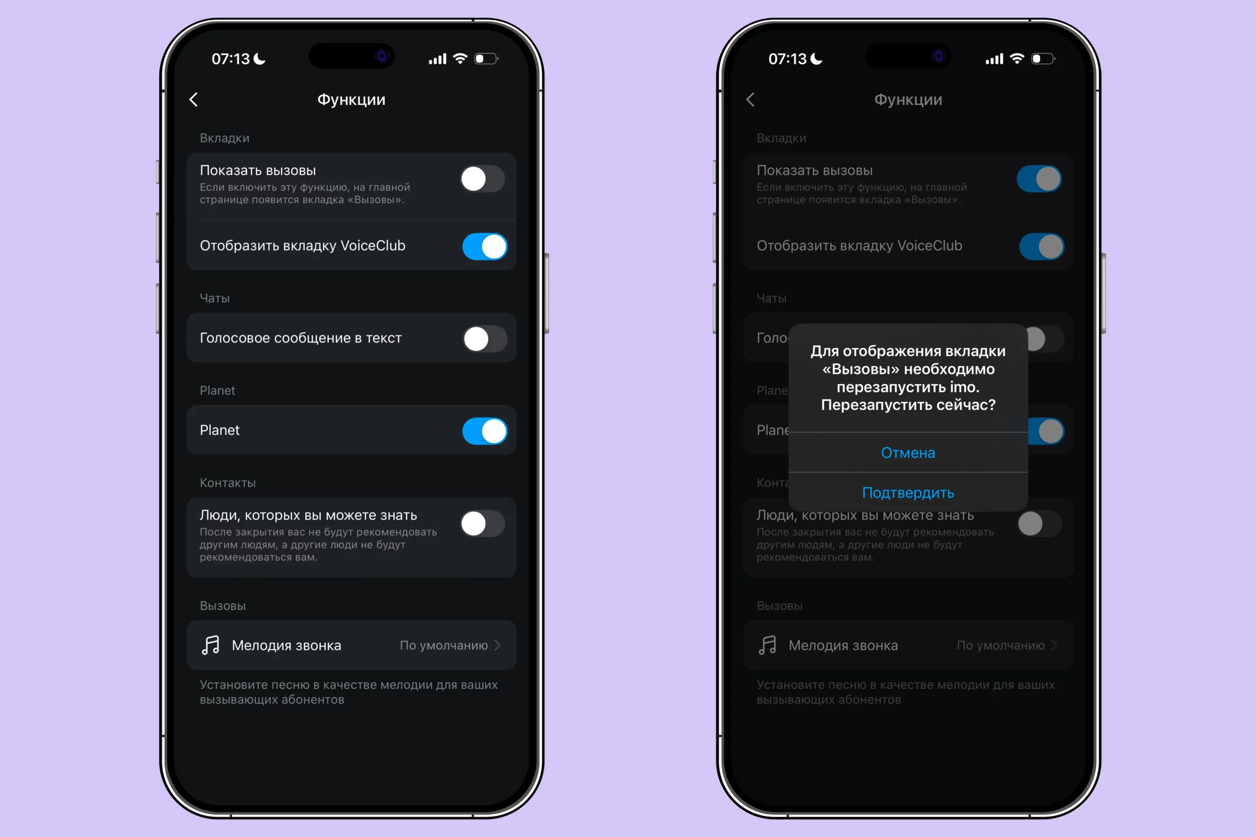 - переключите тумблер «Показать вызовы»;