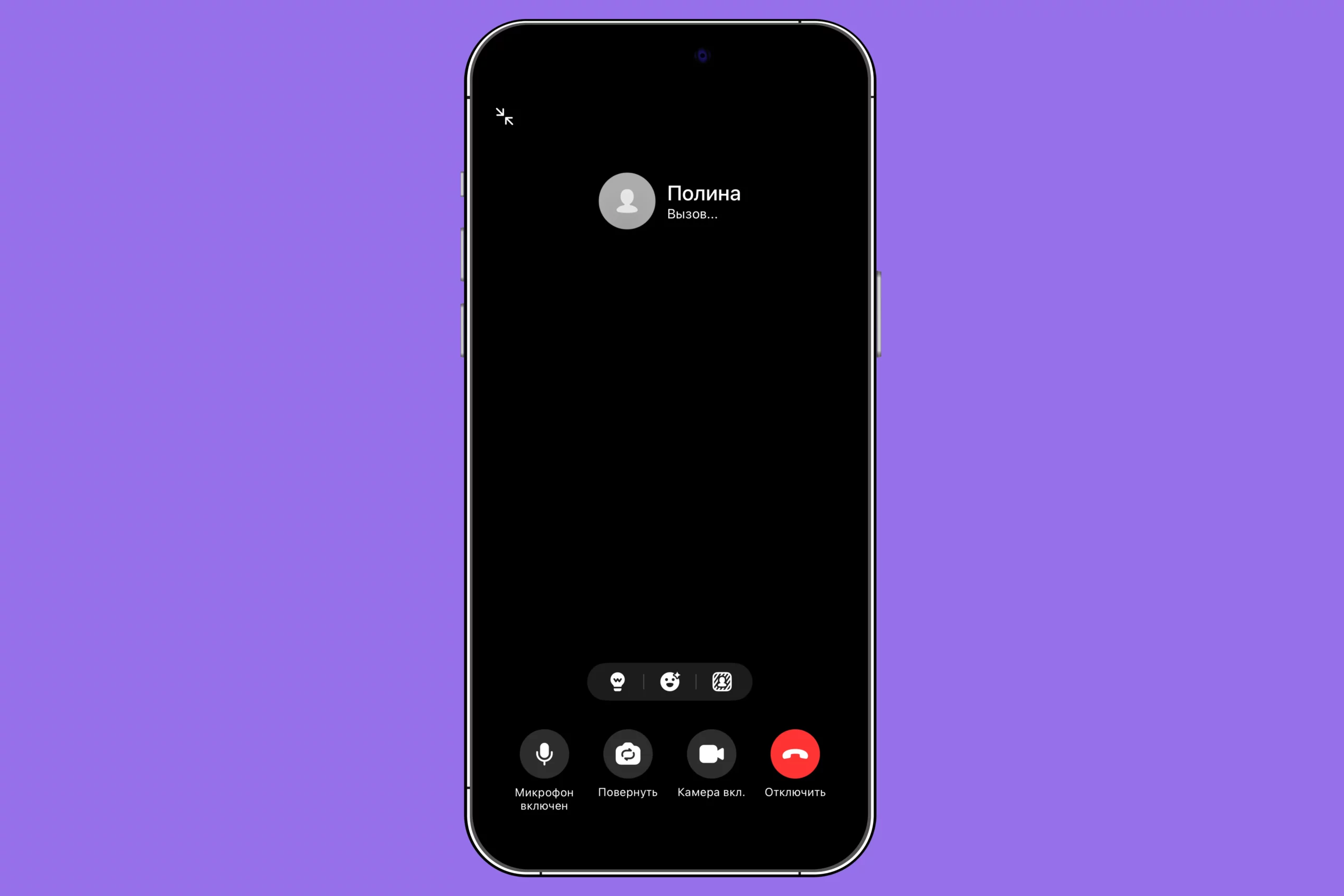 Во время созвона можно отключить собственный микрофон или включить громкую связь. С помощью «стрелок» в левом верхнем углу размер «окна» уменьшается. Так что параллельно со звонком можно заниматься другими делами в смартфоне.