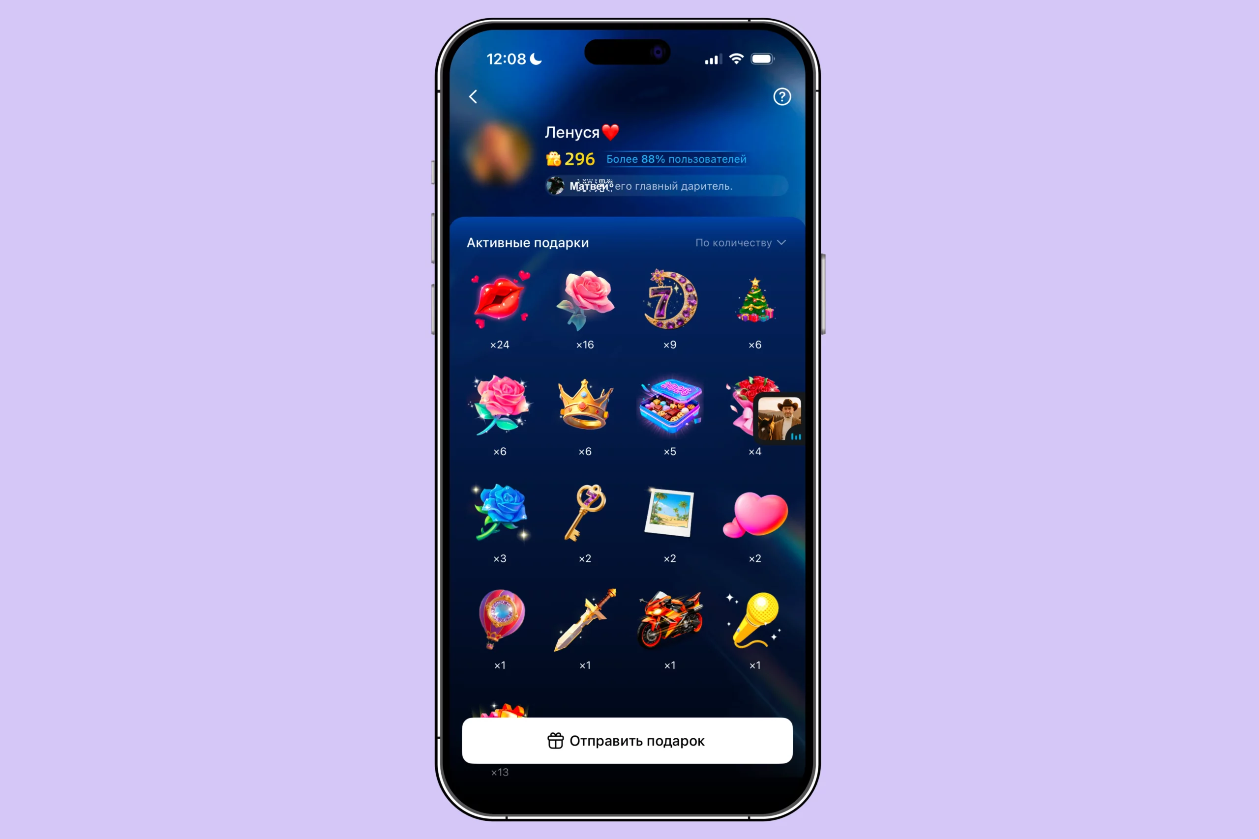 Интересная особенность imo: в комнатах можно отправлять виртуальные подарки за внутреннюю imo-валюту. Она начисляется за вашу активность в комнате. Учитывается все: как часто вы заходите в нее, сколько пишете сообщений и как активно вовлекаетесь в диалог.