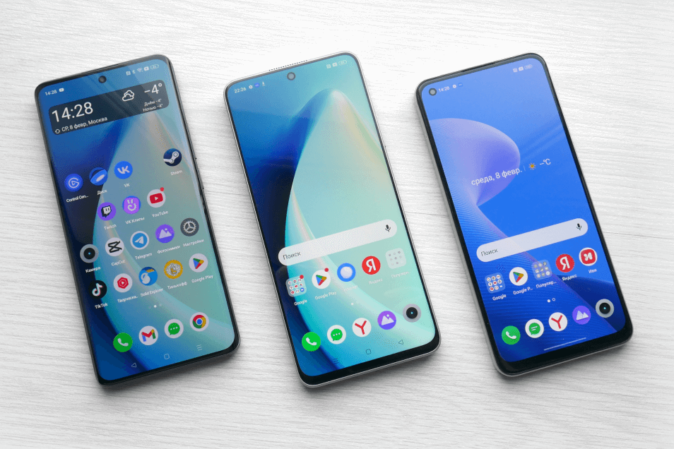 Слева направо: realme 10 Pro+, realme 10 Pro, realme 10.