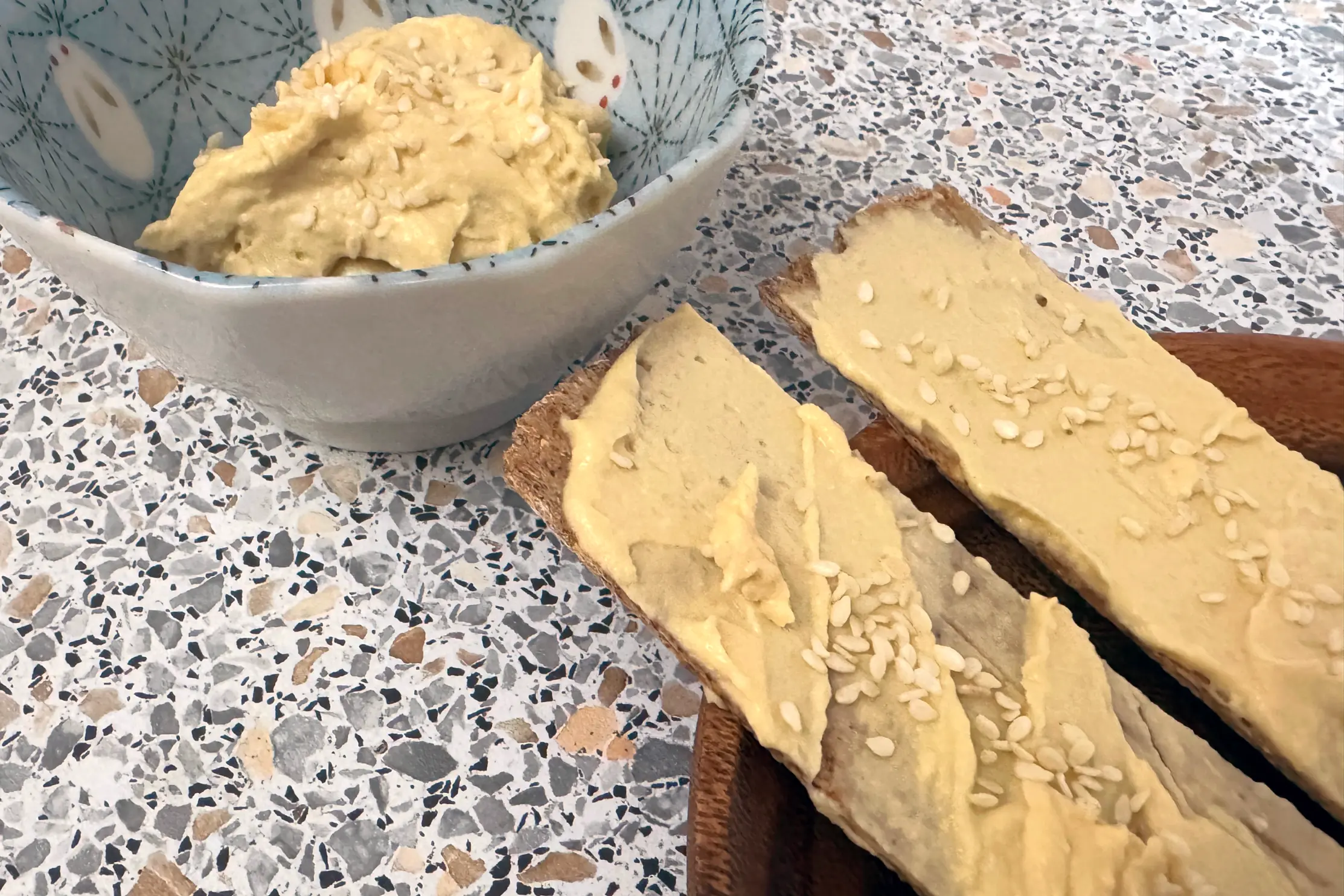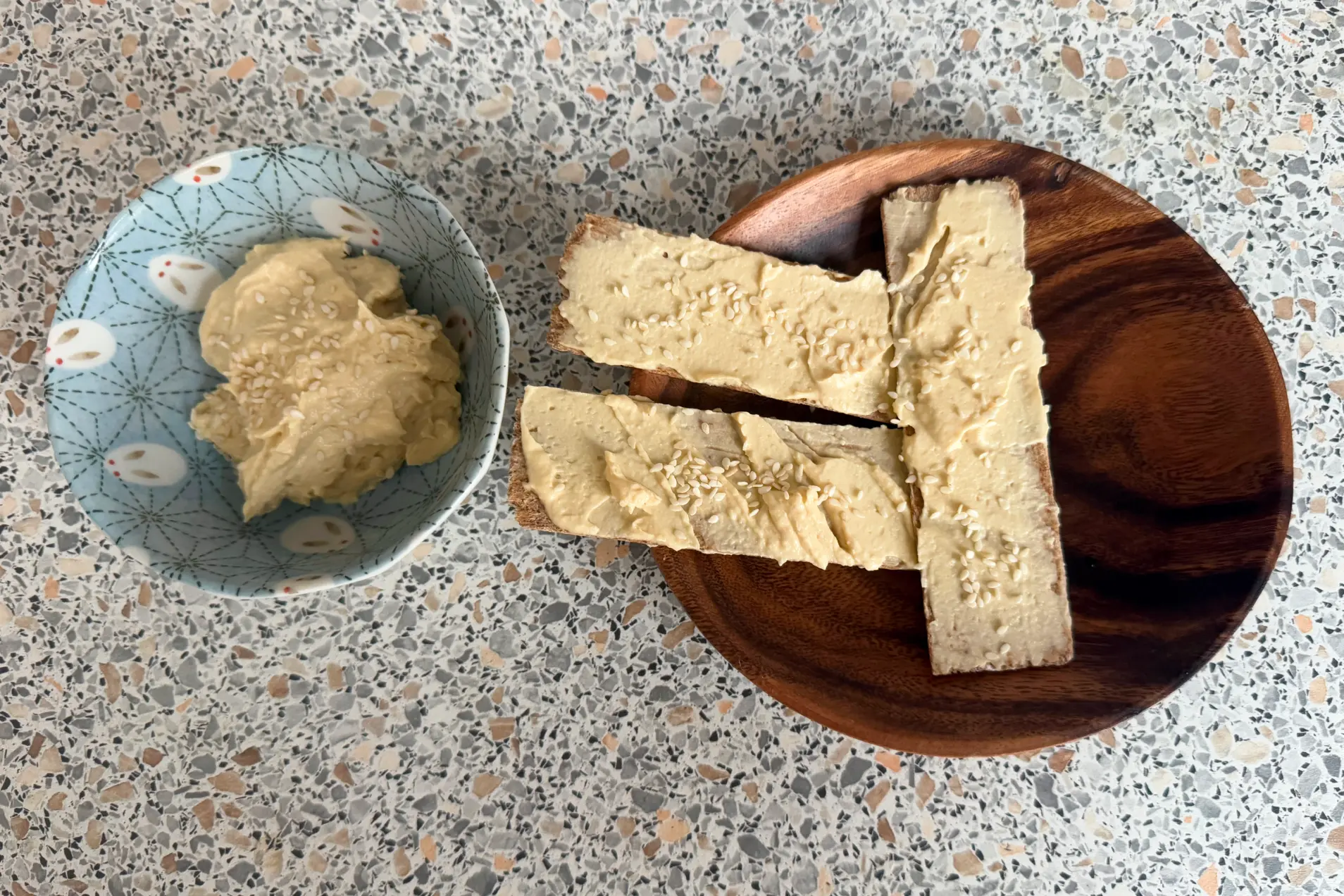 - Добавьте 3 столовые ложки тахини — кунжутной пасты, которая отвечает за ту самую кремовость.