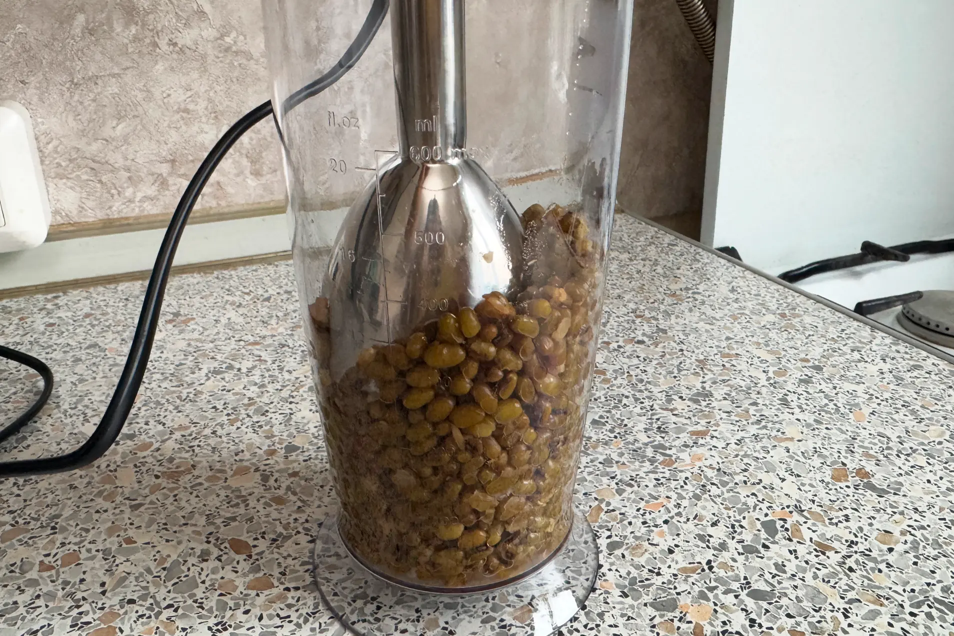 Если нута и чечевицы много — измельчите их отдельно, а потом — смешайте, опять же при помощи блендера.