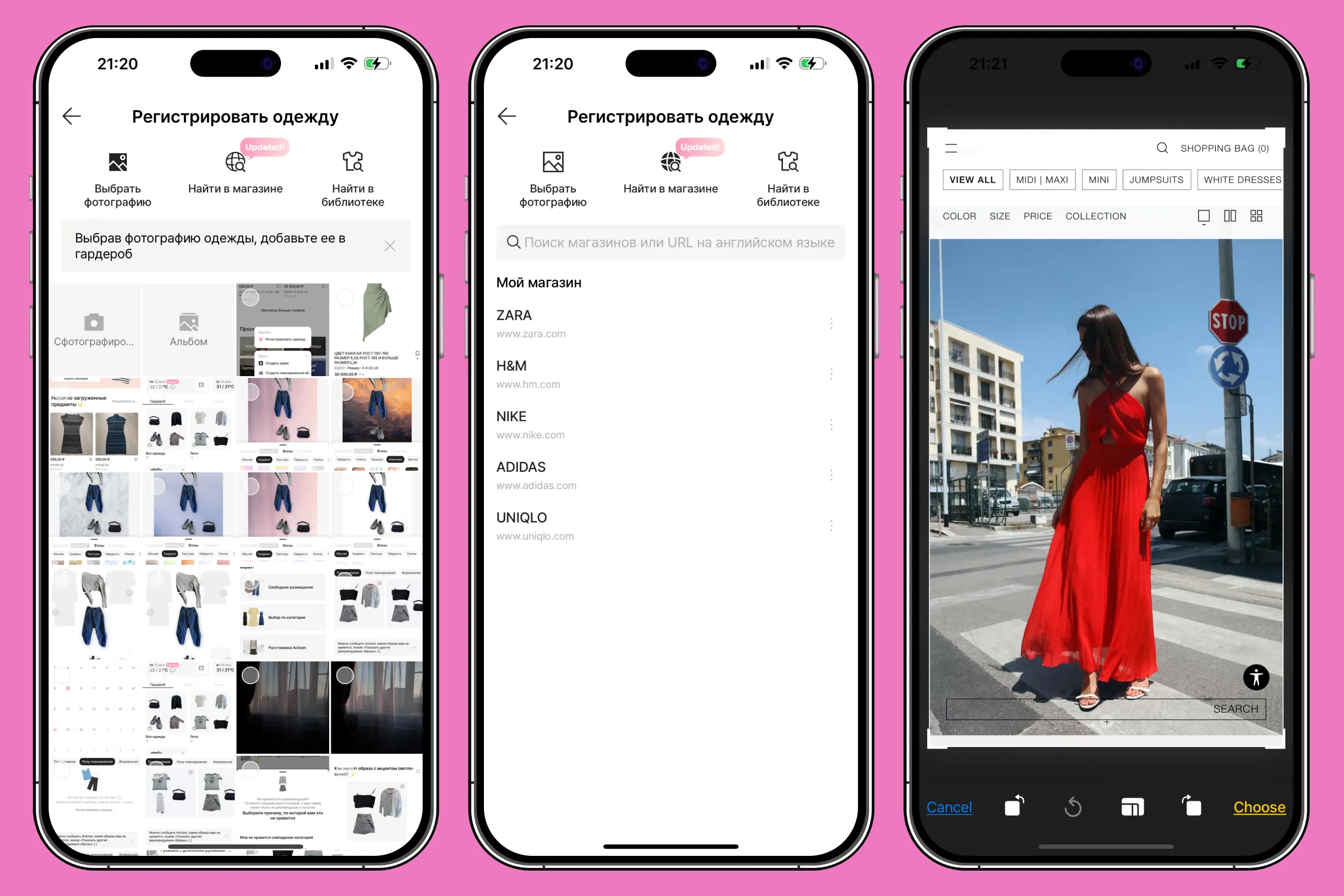 Для этого нажмите на пункт «Найти в магазине», выберите один из предложенных магазинов и найдите подходящую вещь. Далее сделайте скриншот и сохраните. ИИ уберет фон и зарегистрирует одежду в гардеробе.