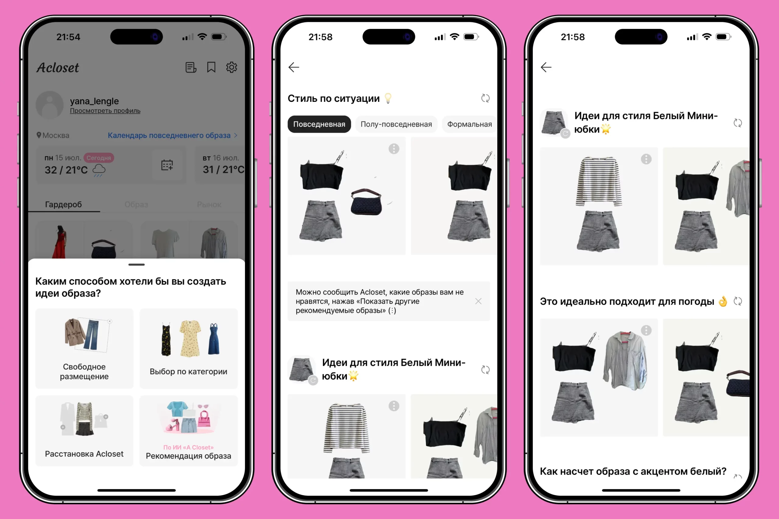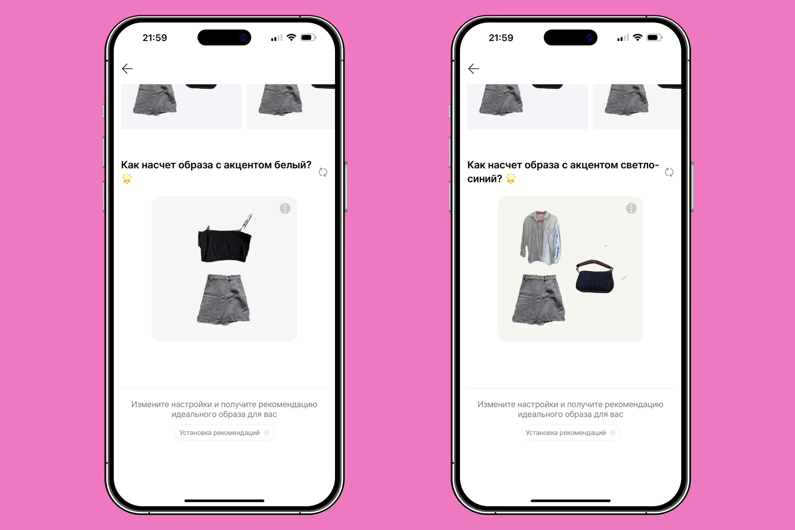 Выяснилось, что приложение по большей части заточено под девушек. Рекомендации для погоды ИИ дал, но в расстановке порекомендовал добавить пальто и сумку.