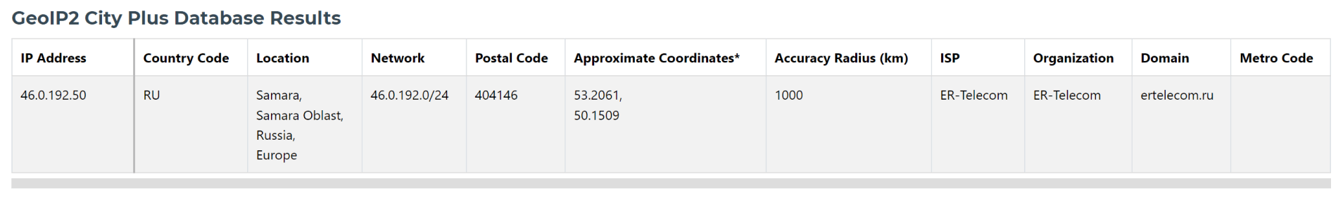 Сервис показывает, что IP-адрес