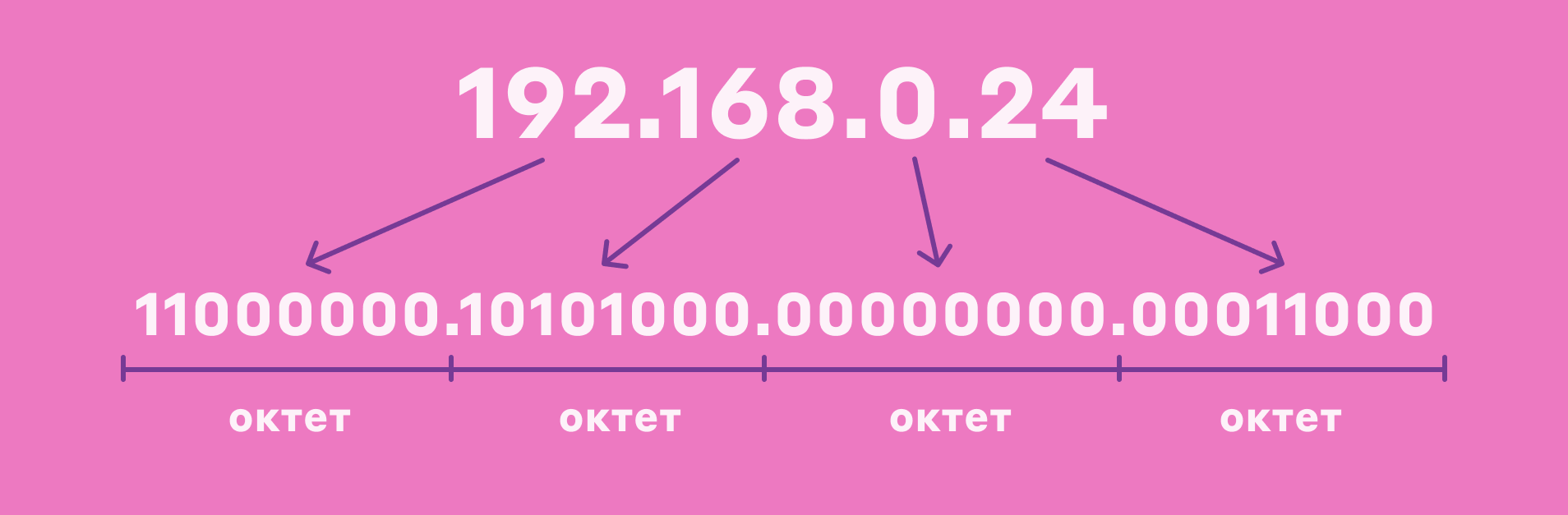 В этом адресе 192.168.0 — это часть, выделенная под номер сети, а 24 — номер устройства в этой сети