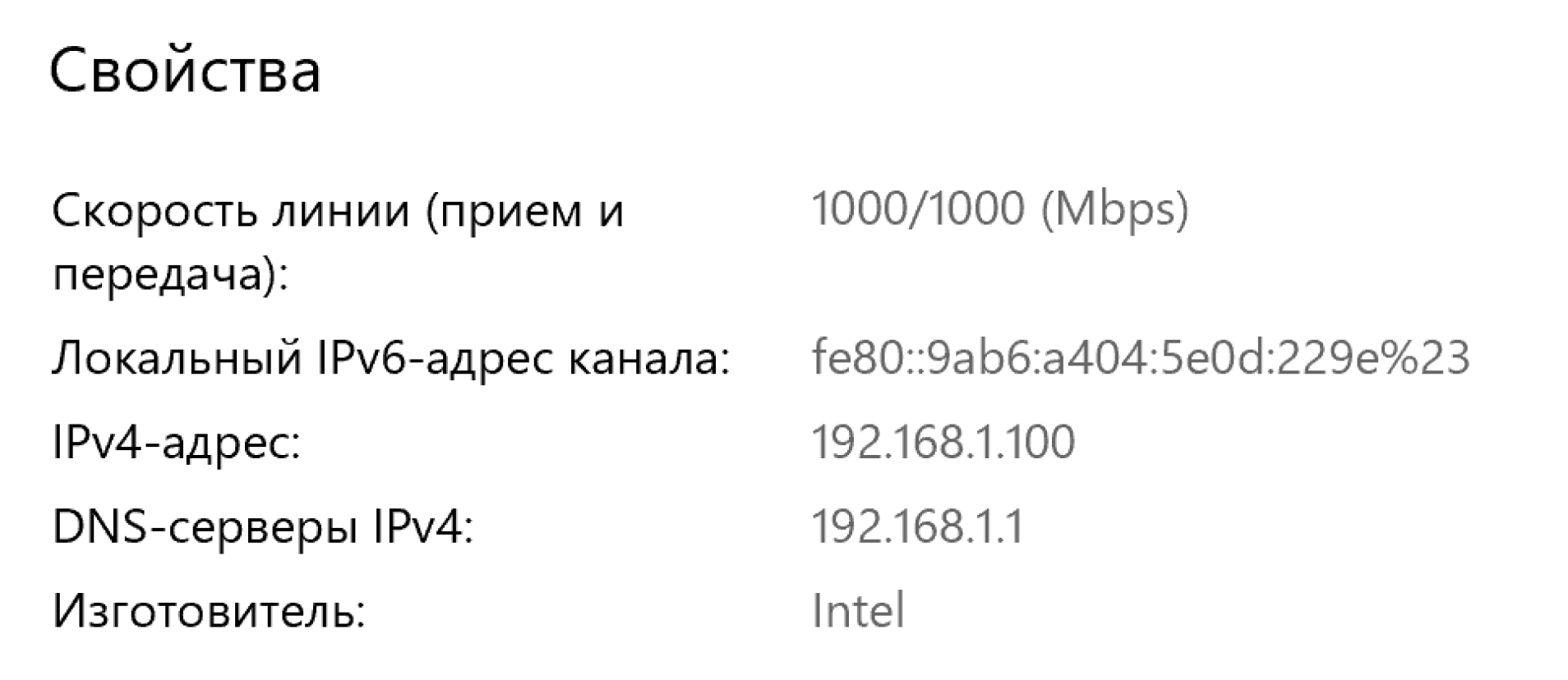 Другой вариант: Настройки → Сеть и интернет → Состояние → Свойства. В появившемся окне вы увидите примерно следующее: