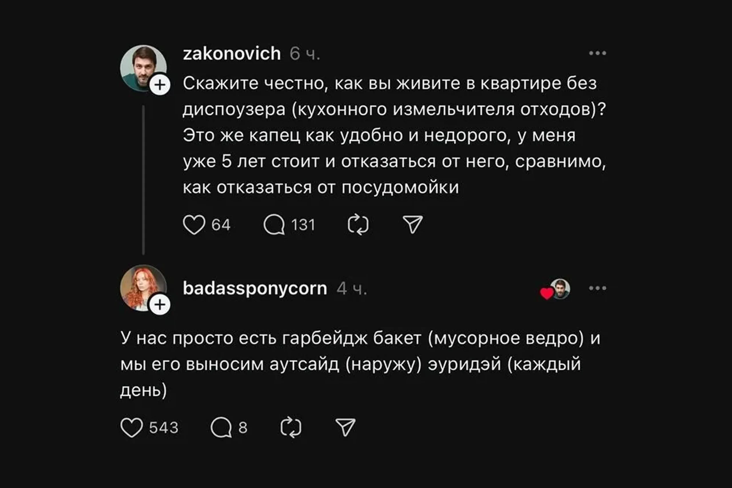 Купил родителям измельчитель мусора, чтобы порадовать. Приехал, установил, показал: вот вода, вот кнопка, это кидайте, а это не кидайте. Родители покивали… и не стали пользоваться. Мама говорила: «Страшно как-то», а папа философски бросал очистки в ведро — рука помнит траекторию. Через пару месяцев завели компостер — теперь вся органика летит в него (не пропадать же добру!). А диспоузер превратился в молчаливого соседа — только место под мойкой занимает.