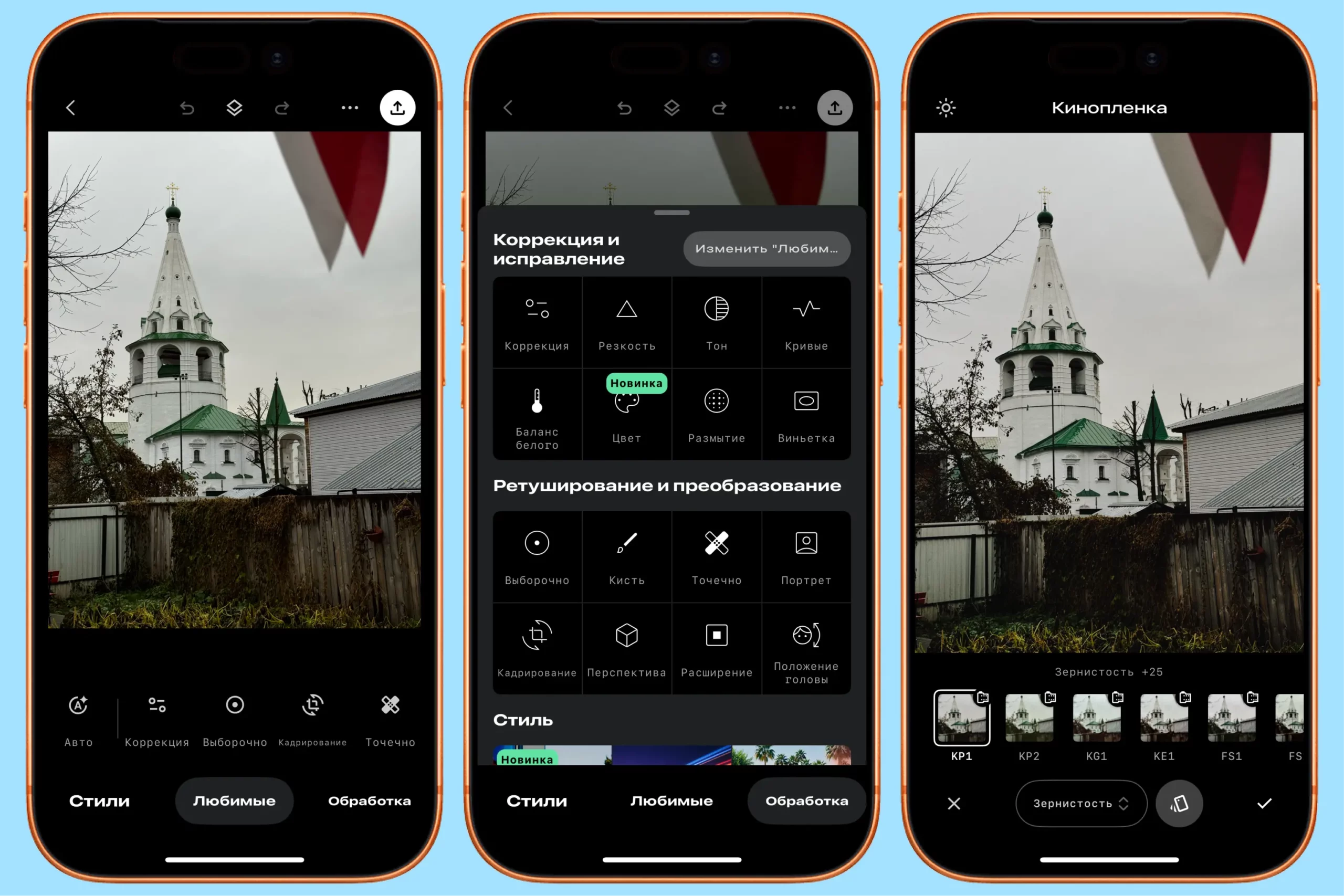 В целом, это «Лайтрум» на максималках: здесь есть все то же самое, но бесплатно. Плюс есть классные пленочные пресеты с тонкой настройкой влияния (этого, как правило, не хватает во всех фильтрах) и интересные инструменты для ретуши кожи.