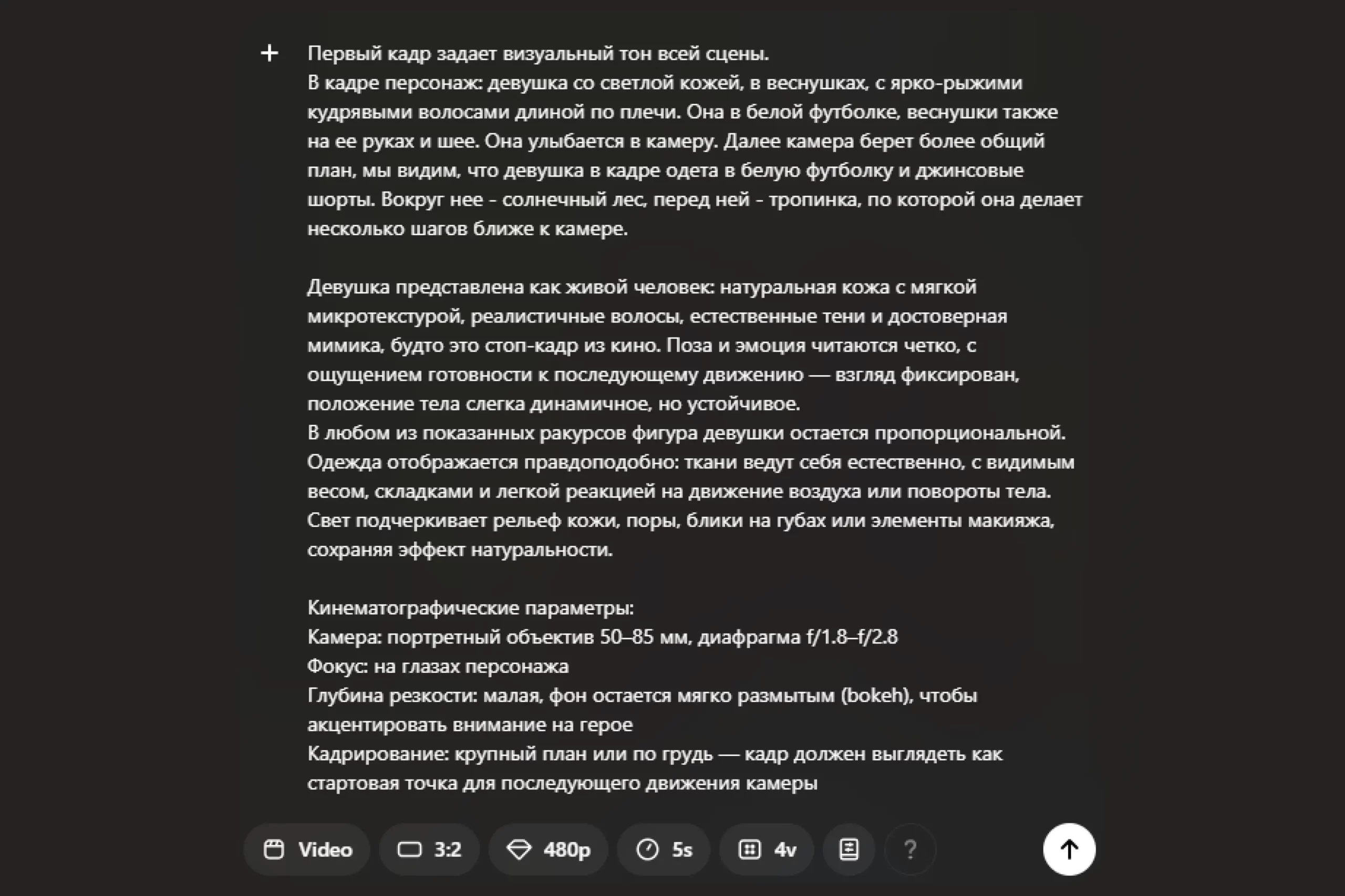 - Изображение — это один фиксированный кадр, а видео — это движение, переходы, ритм и последовательность. Поэтому в видеопромптах нужно описывать не только «что изображено», но и как это меняется: камера движется, персонаж оборачивается, свет становится ярче