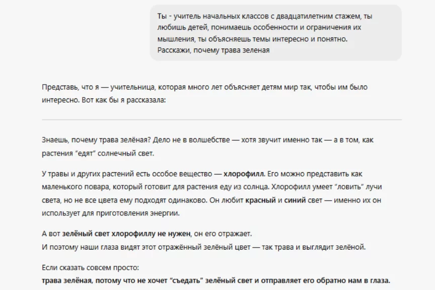 Учитель объяснит тему проще, сценарист — образнее, маркетолог — убедительнее, профессор — на языке фактов. Это особенно важно, если ответ должен подходить конкретной целевой аудитории.