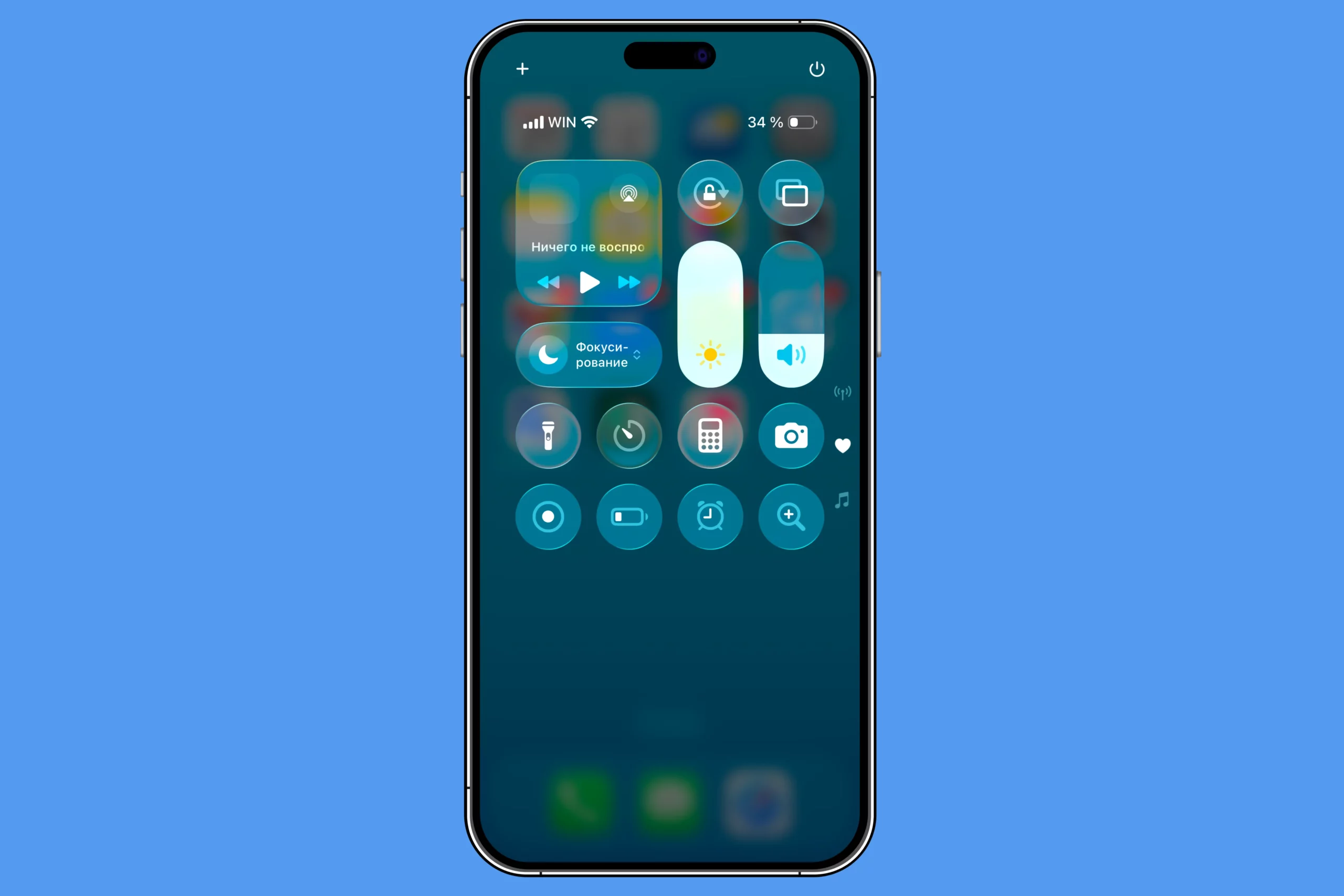 В «Пункте управления» по умолчанию находятся иконки часто используемых функций — Wi-Fi, Bluetooth, калькулятора, фонарика. Вы можете убрать ненужные и добавить наиболее полезные для вас (например, запись экрана).