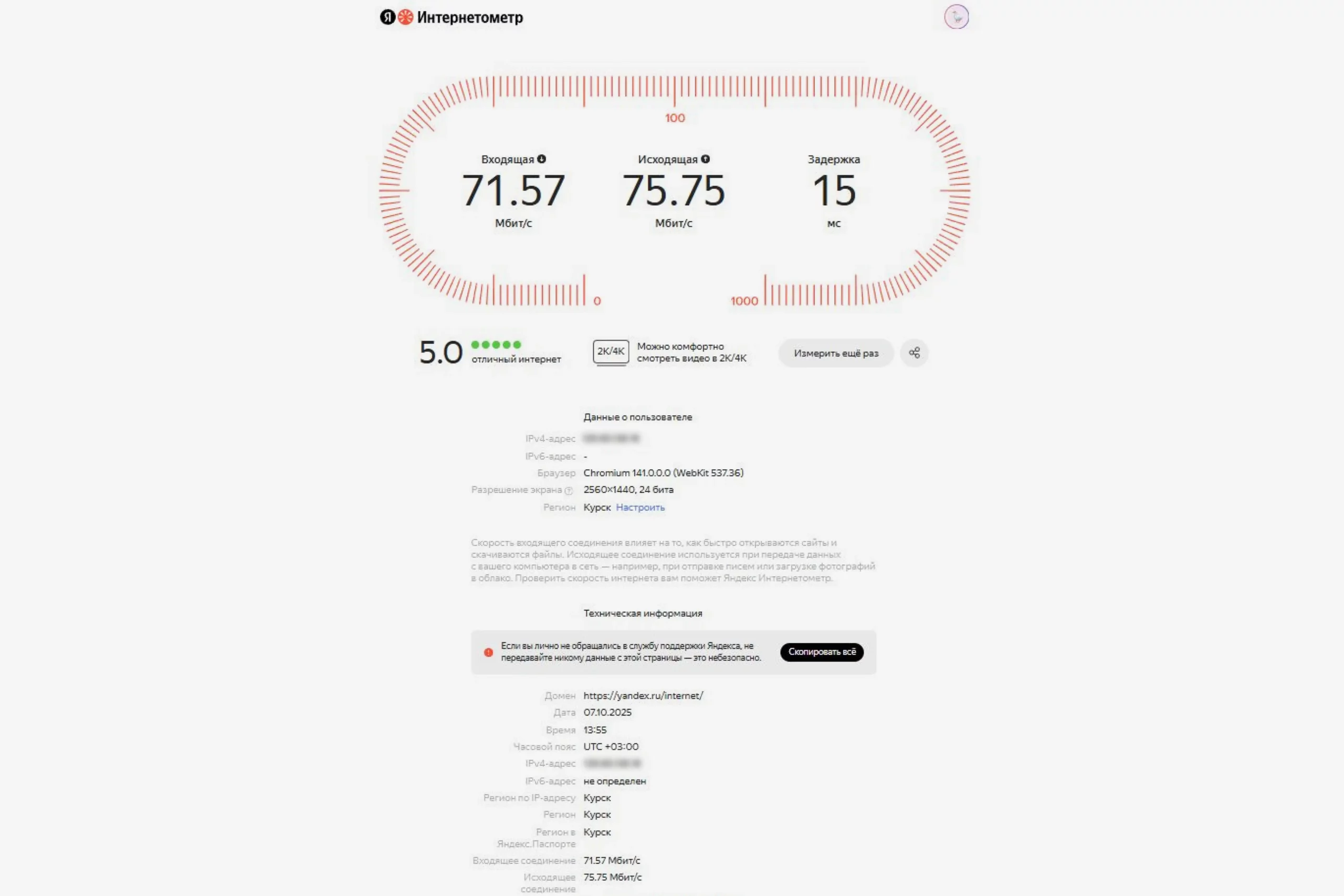 - Скорость ниже 100 МБит/сек, хотя по тарифу должна быть выше. Скорее всего, конечное устройство (смартфон, ПК, ноутбук) или сам роутер просто не поддерживает скорость выше 100 МБит/сек — проверьте информацию в документации к гаджетам.