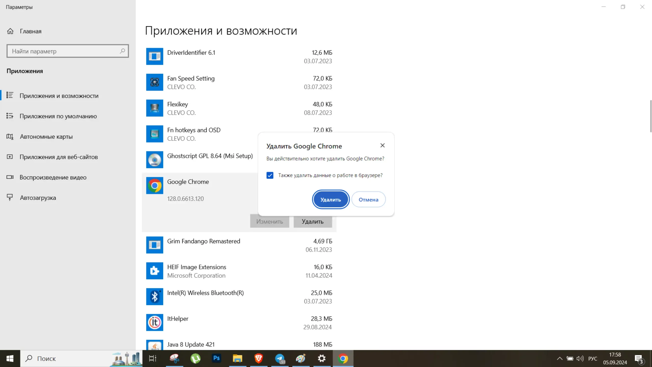 4. Найдите Google Chrome в списке и нажмите «Удалить».