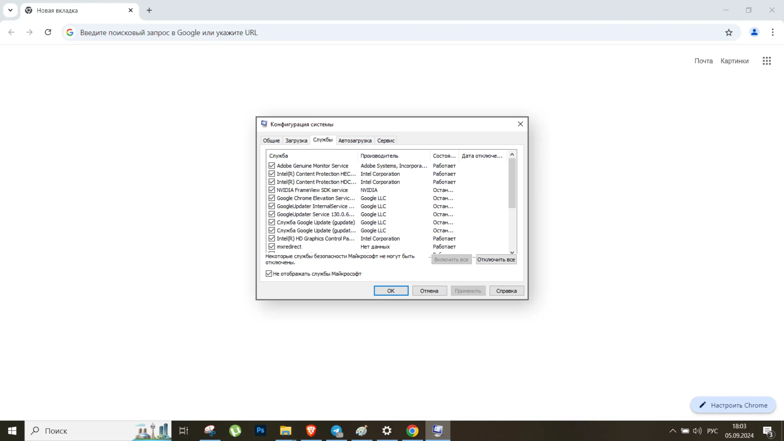 Теперь у вас установлена старая версия Google Chrome, и она больше не будет автоматически обновляться. Если вы решите начать пользоваться свежей версией с автообновлением, откройте «Конфигурация системы» → «Службы» и верните флажки на место. Далее запустите браузер, зайдите в его настройки, выберите раздел «О браузере Chrome». После чего автоматически начнется обновление, появится предложение перезапустить программу.