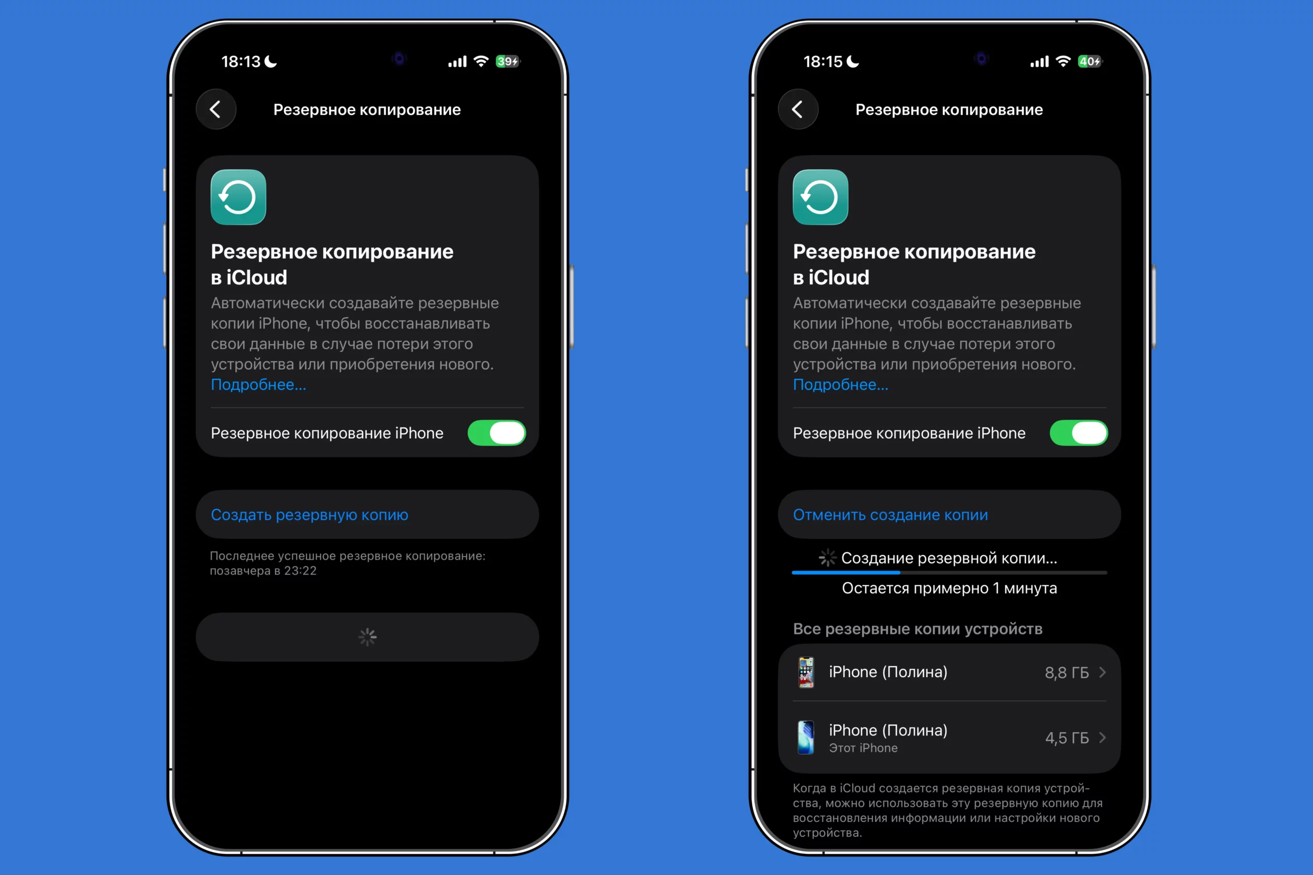 В сервисе iCloud можно хранить все файлы, которые есть на вашем айфоне — от фотографий до электронных книг. Отдельного приложения iCloud на смартфоне нет, это встроенная функция в «Настройках». Для создания резервной копии вам понадобятся только ваш iPhone и несколько минут.