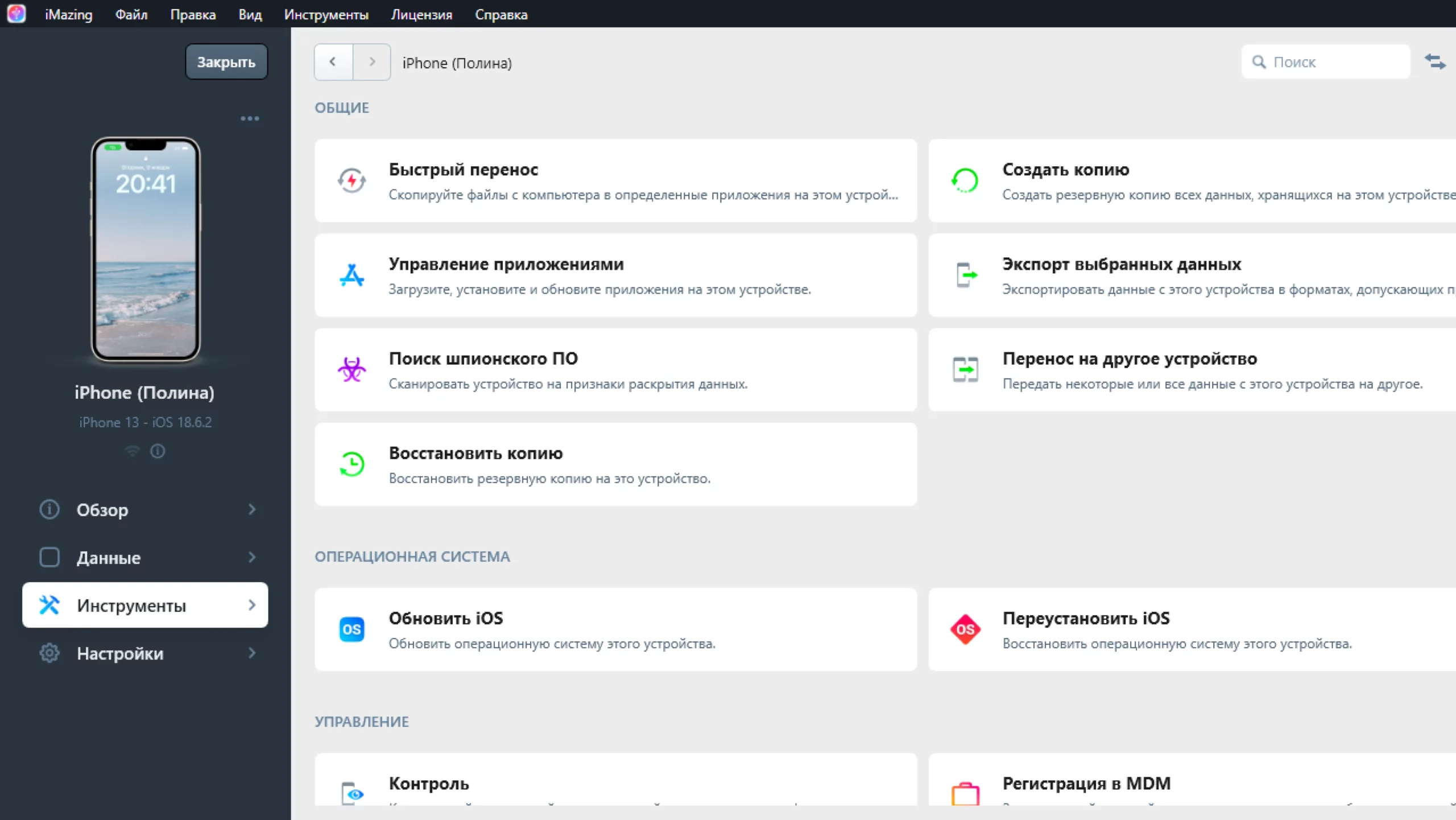 iMazing — приложение, с помощью которого получится перенести все файлы со старого айфона на новый. Чтобы его использовать, вам понадобятся сам Apple-смартфон, кабель и компьютер. Для стабильной работы программы нужно подключение к сети.