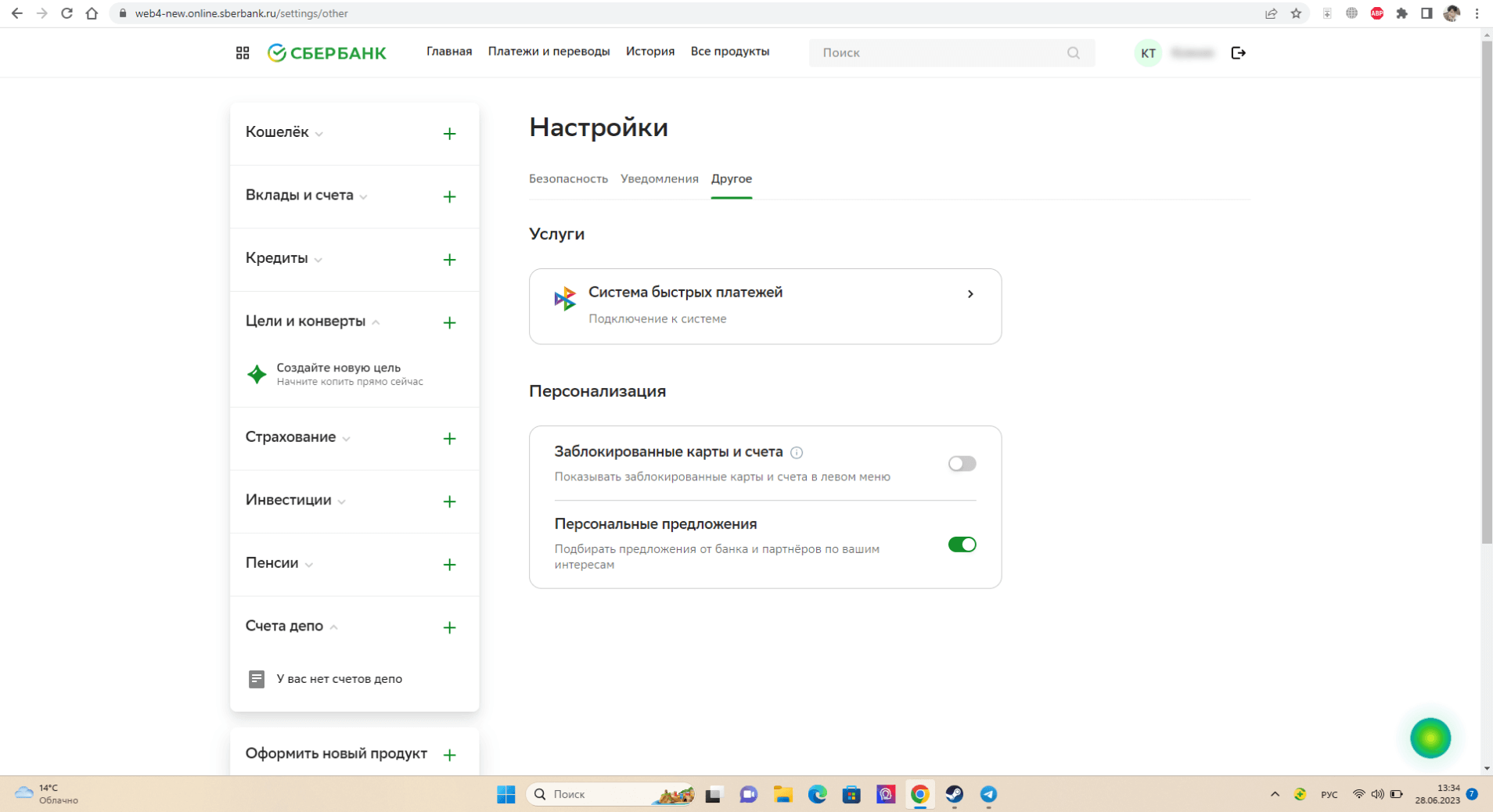 - Проскрольте экран вниз, найдите раздел «Система быстрых платежей».