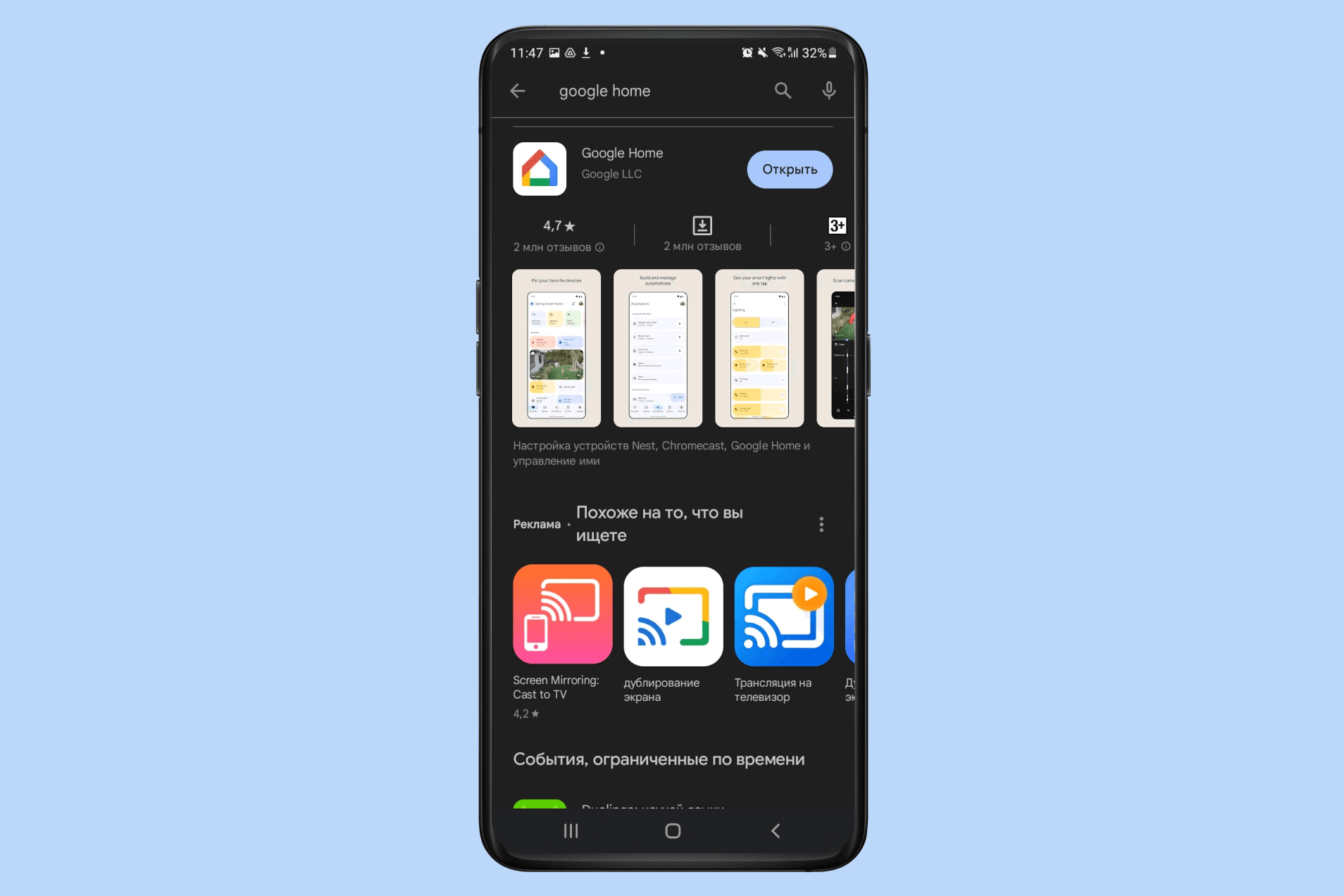 5. Для создания связки телефон + ТВ скачайте специальное приложение Google Home для приставки. Сделать это можно из Google Play или в App Store.