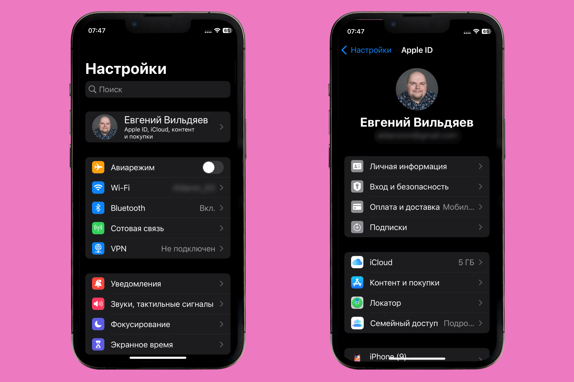 - Apple ID (самый первый пункт с вашей фотографией);