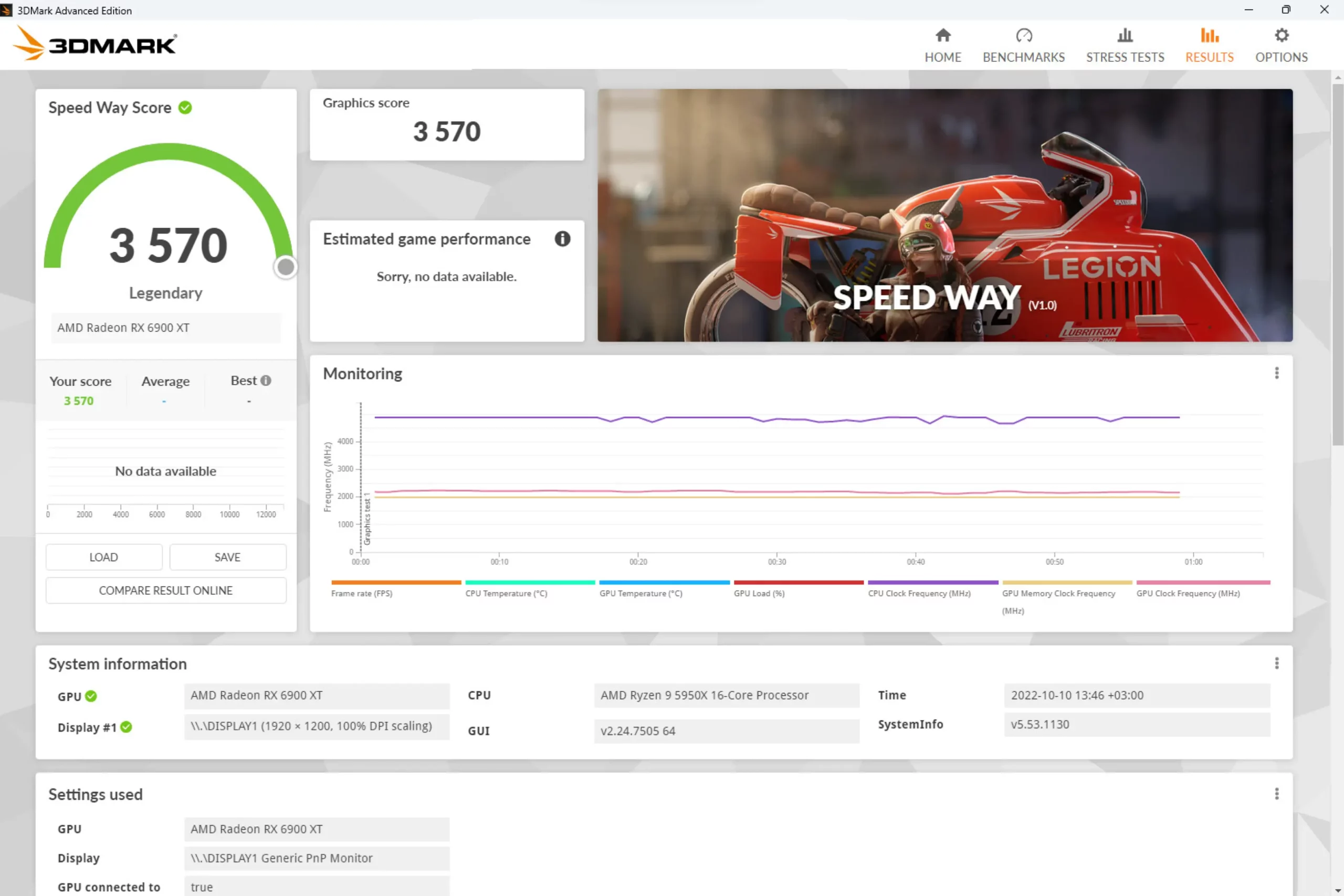 2. Настройте разрешение и графические параметры теста.