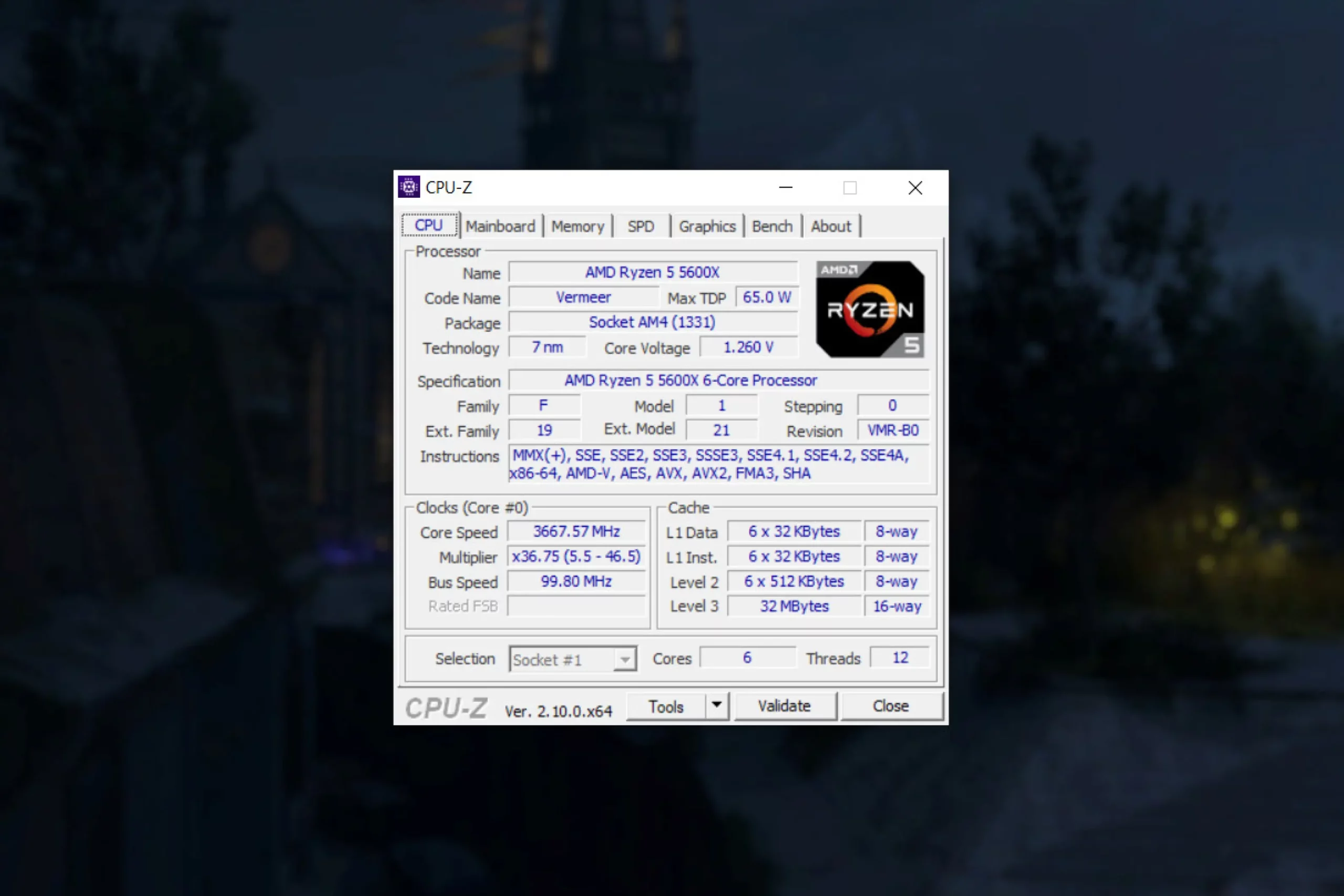 1. Во вкладке CPU отображается вся информация о процессоре.