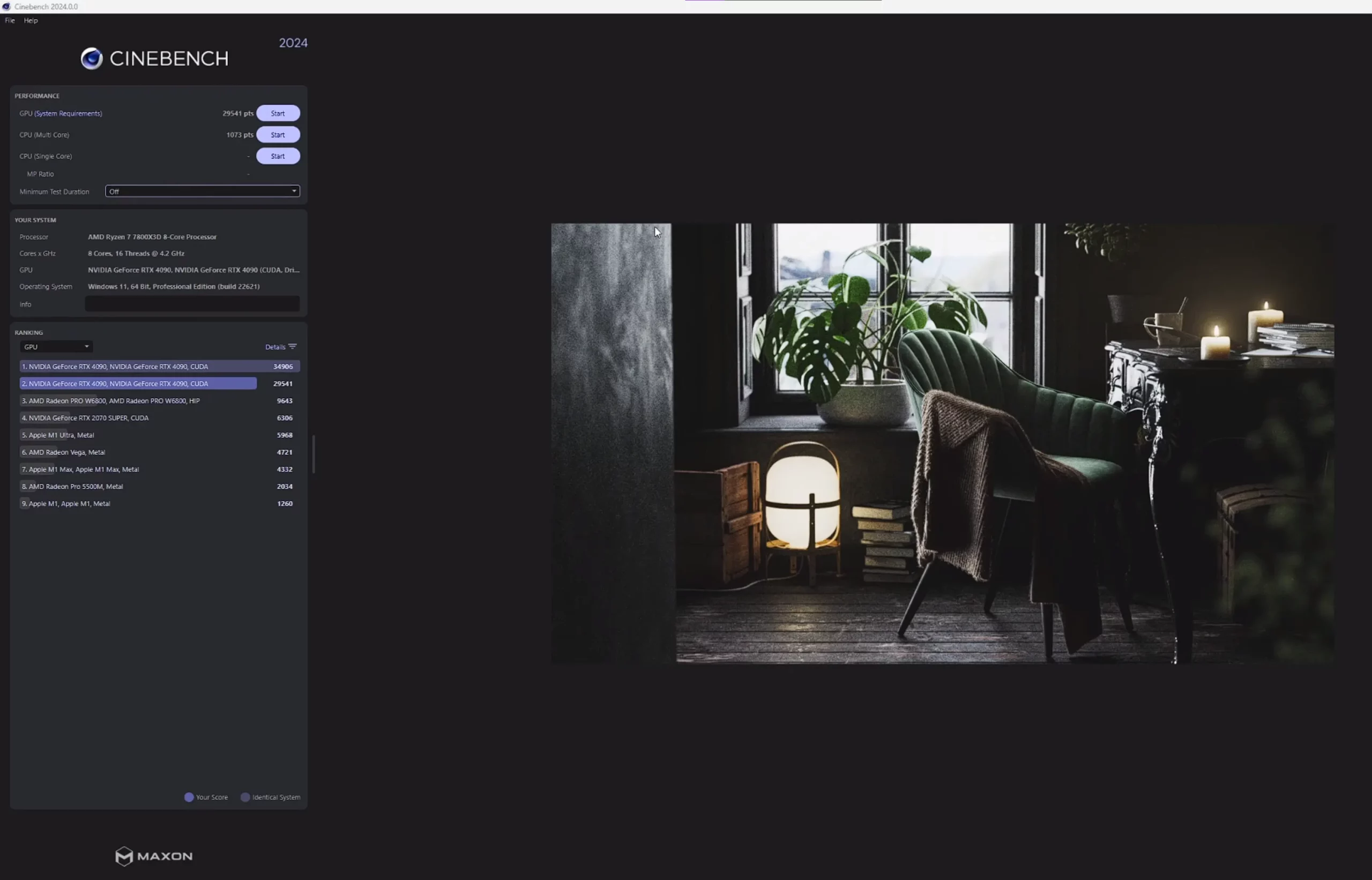 В бенчмарк Cinebench 2024 разработчики добавили возможность запускать рендеринг сцены на мощностях видеокарты, а не на процессоре. В целом Cinebench 2024 можно рассматривать в качестве необязательного, но дополнительного теста, которым можно проверить видеокарту на предмет ошибок во время задач по рендерингу.