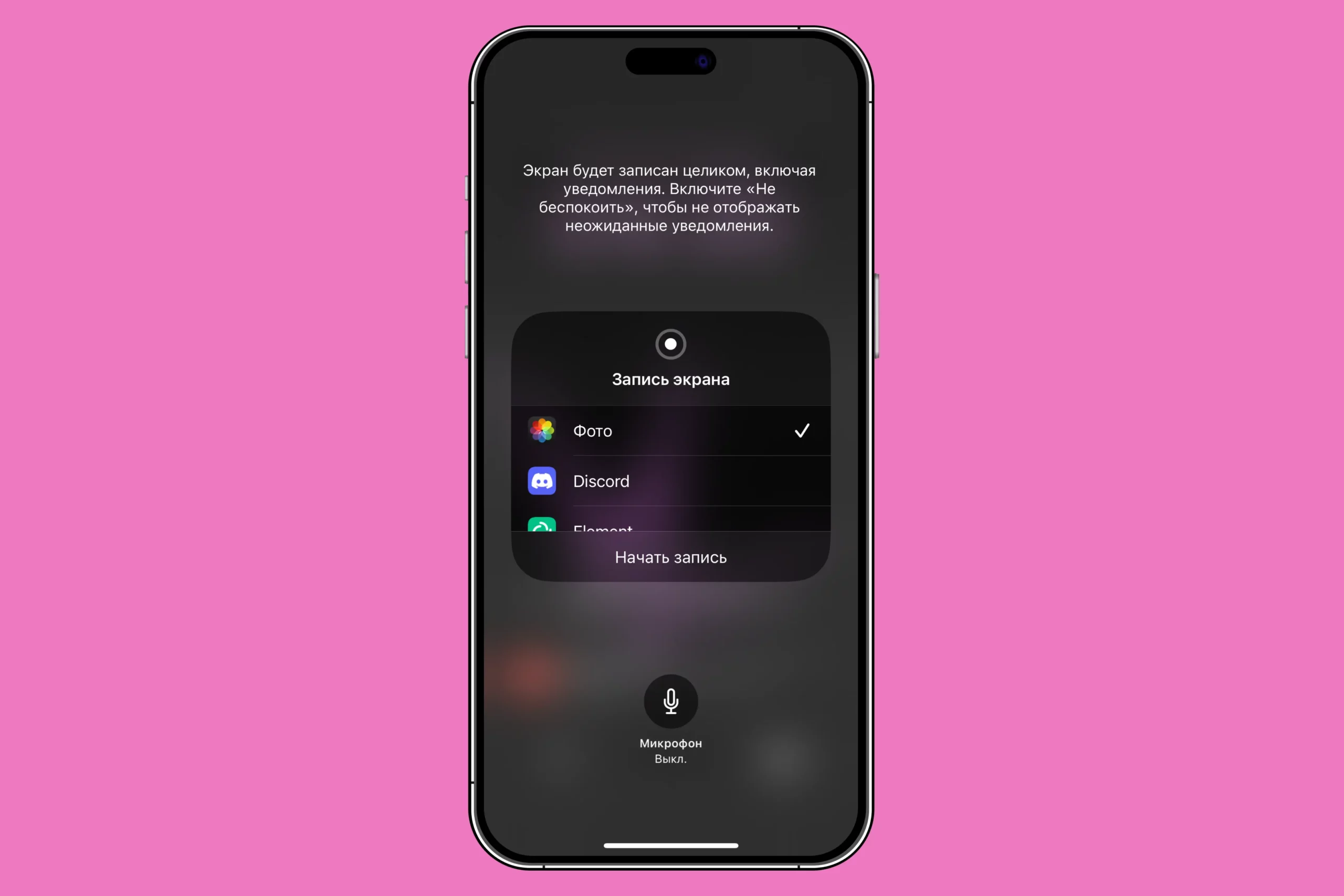 В дополнение к видео и аудио из приложений айфон умеет захватывать звук с микрофона. Так у вас получится делать обучающие видео или, например, видео того, как вы играете в игру, с вашими комментариями. Для этого, прежде чем начать запись, выполните следующие шаги.