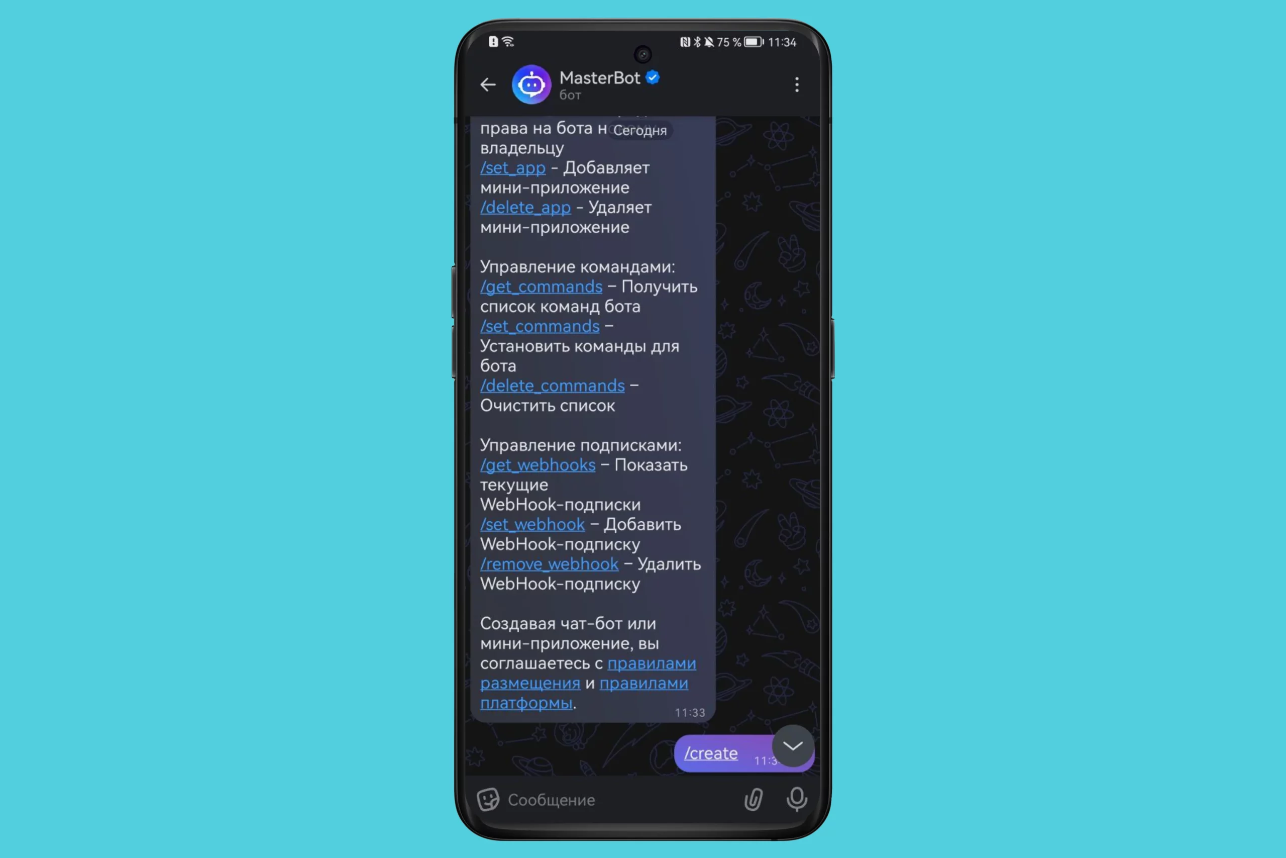 Шаг 2. Отправьте команду /create