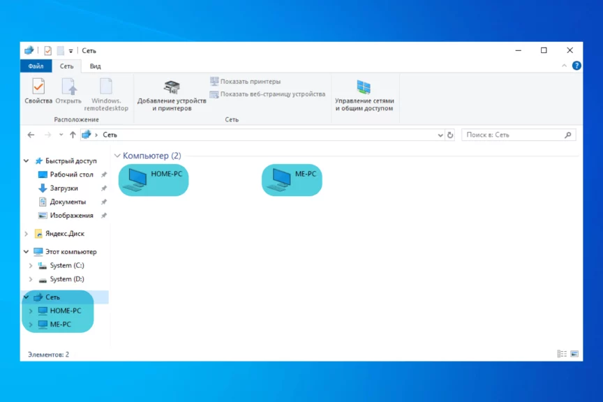 В «Проводнике» должно появиться имя основного компьютера, и с последним можно будет быстро обмениваться файлами по проводу. Также он появится, например, в играх, которые поддерживают кооперативы по LAN.