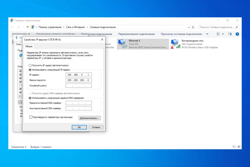- Перейдите в «Свойства"/"IP версии 4 (TCP/IPv4)».