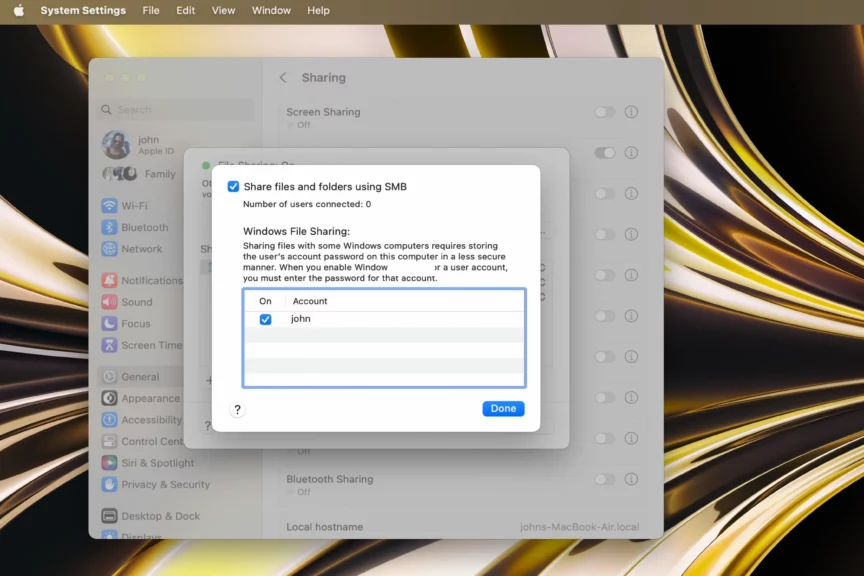 На macOS организовать «локалку» так же просто, как создать домашнюю сеть между двумя компьютерами на Windows, но для этого используется другой способ — через протокол SMB. Чтобы начать, откройте основные настройки, включите тумблер «Общий доступ» и сделайте следующее: