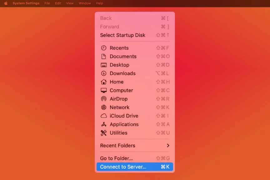 Вставьте скопированный адрес на другом Mac в Finder. Для этого нажмите кнопку «Переход» и «Подключение к серверу». Также этот адрес можно использовать для соединения через сторонние SMB-клиенты, например, под Windows — так как сделать сеть между двумя компьютерами можно и между устройствами на разных ОС.