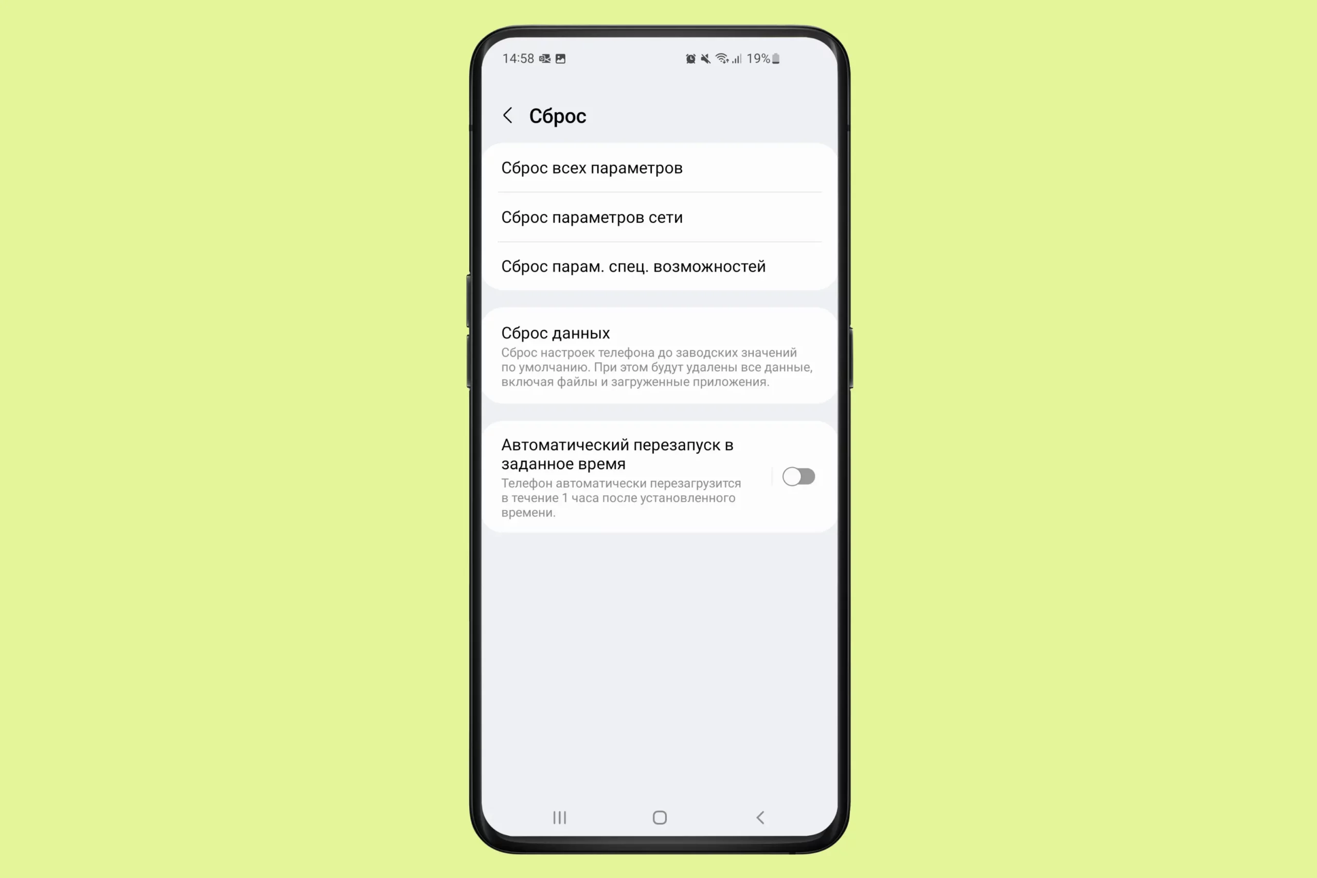 - Найдите опцию «Сброс данных» или «Сброс настроек до заводских».