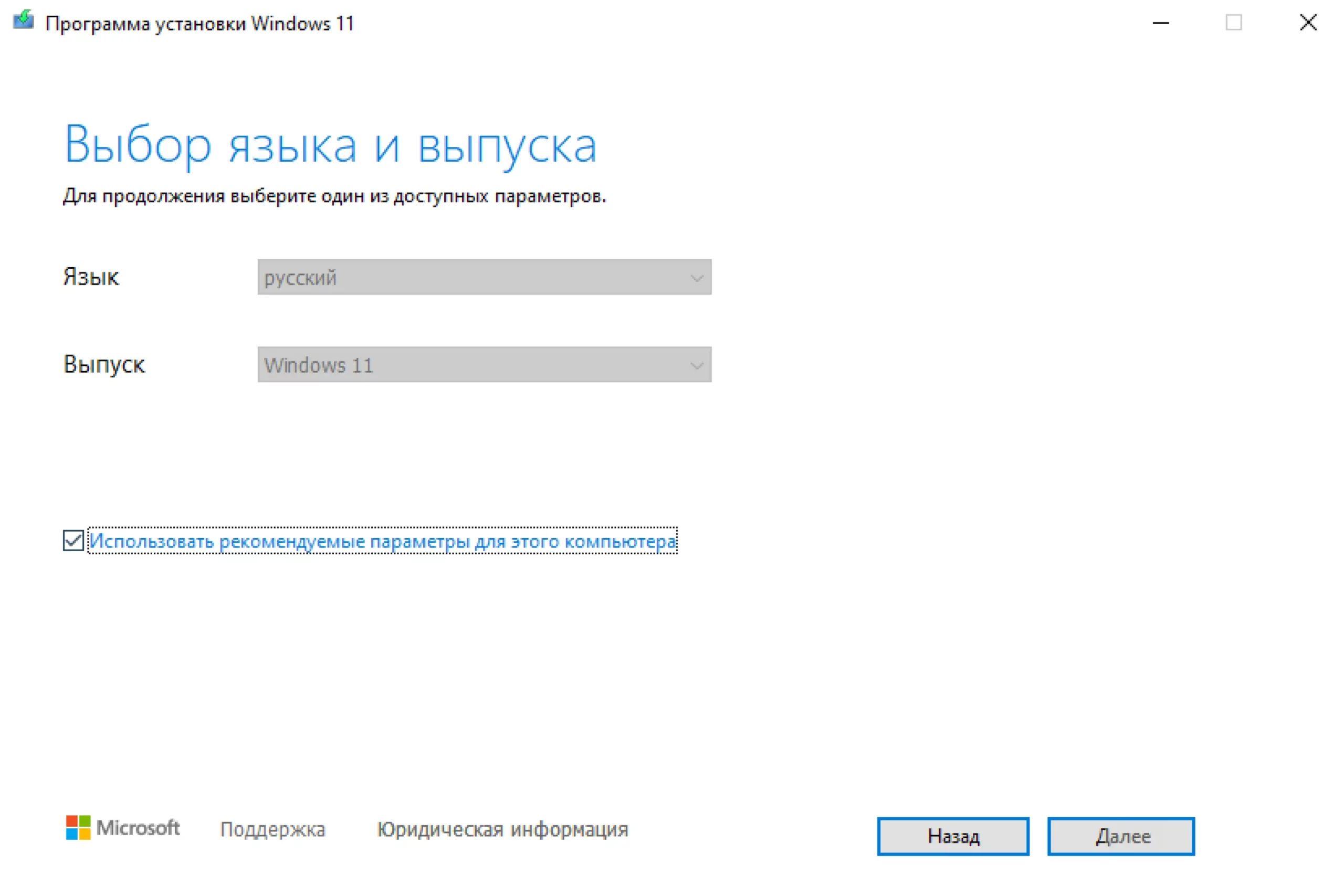 На этапе выбора языка и версии Windows, а также USB-устройства внимательно проверьте, что все пункты соответствуют вашим пожеланиям. Кстати, для записи установочника Windows 11 потребуется флешка минимум на 8 ГБ. На ней не должно быть важных данных, так как во время создания загрузочного диска она будет отформатирована.