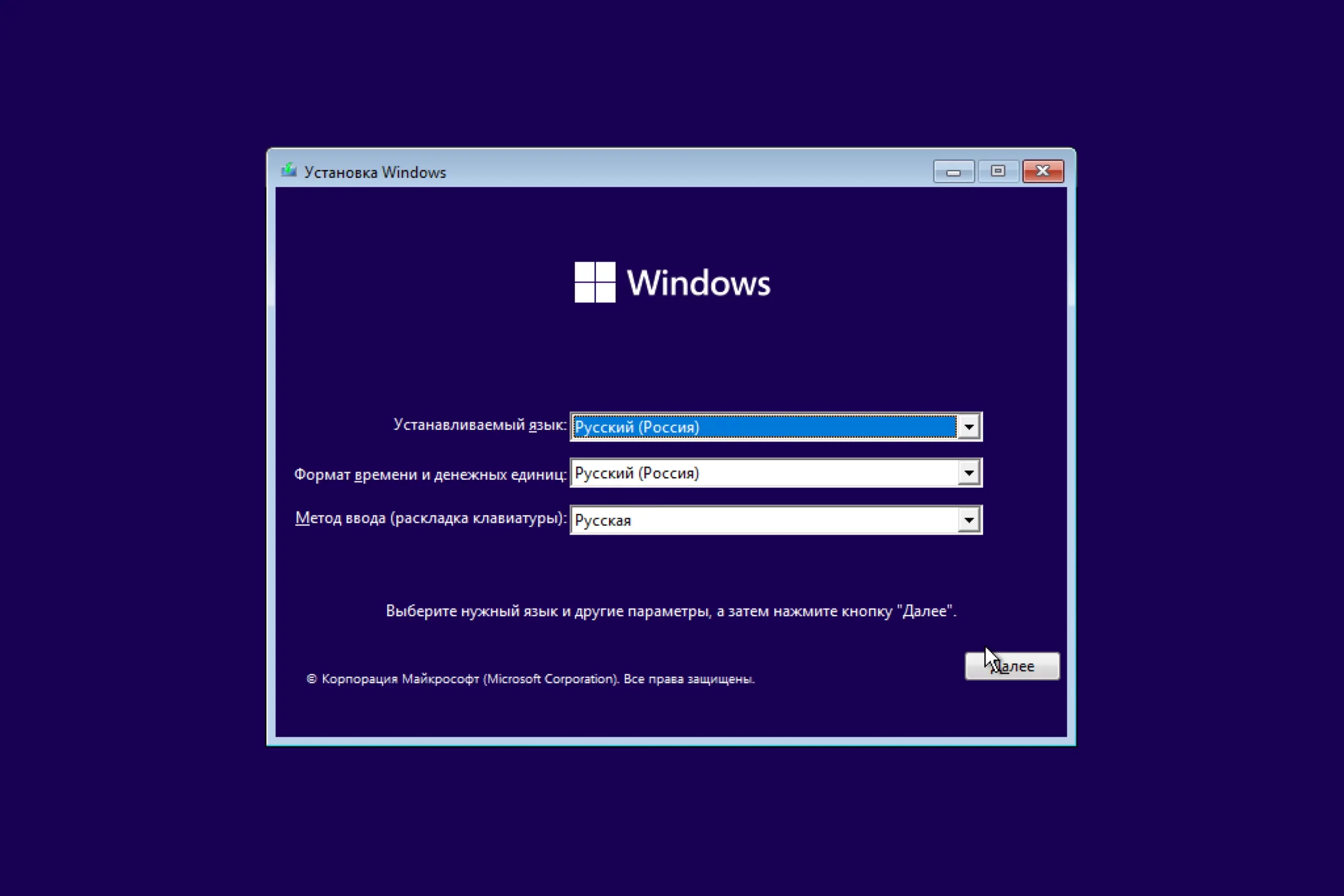 Процесс установки Windows 11 максимально прост. В первом появившемся окне выбираем нужный язык.