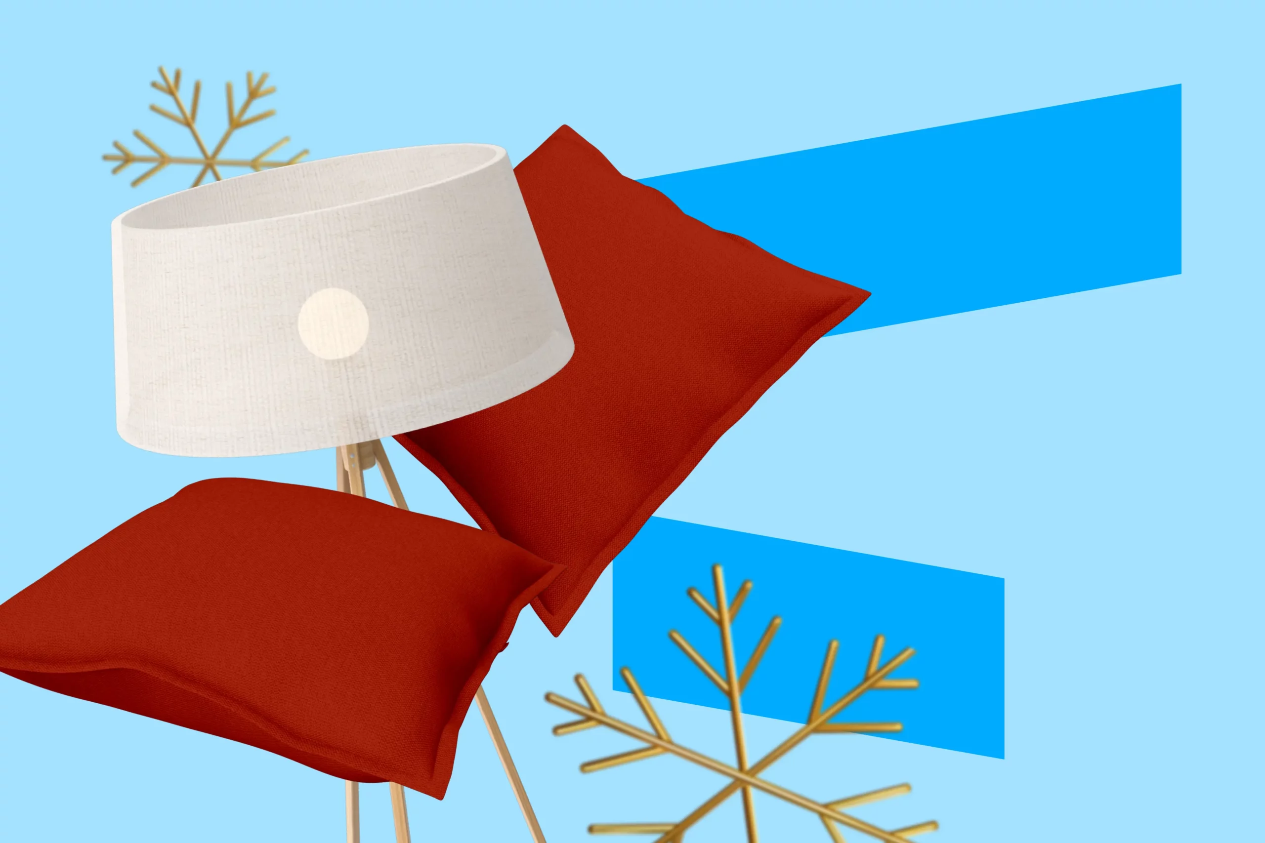 Необязательно покупать новую мебель — все решают детали. Красные шары на елку, оранжевый плед, классический восточный ковер, подушки с пайетками — используйте все, что найдется или попадется в новогодних каталогах с аксессуарами.