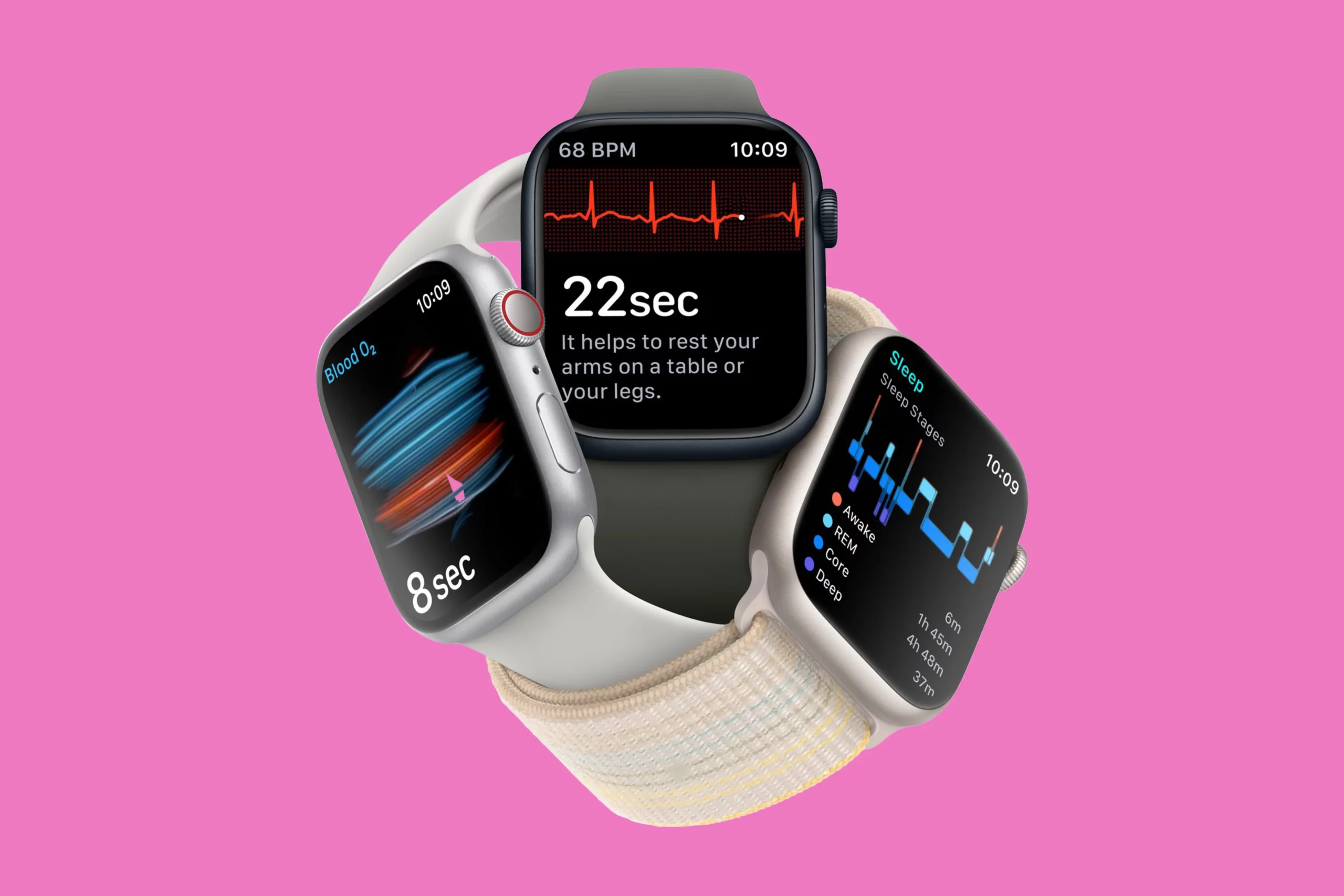 Apple Watch — отличный девайс для измерения показателей здоровья. Исследования показали, что Apple Watch отслеживают сон ничуть не хуже профессиональных ЭЭГ-устройств. Вы сможете улучшить качество сна, составить его расписание, а также определить факторы, которые мешают вам высыпаться: поздний прием пищи или стресс. Еще у вас получится определить оптимальное время пробуждения. Новые модели Apple Watch могут выполнять ЭКГ и проверять уровень кислорода в крови.