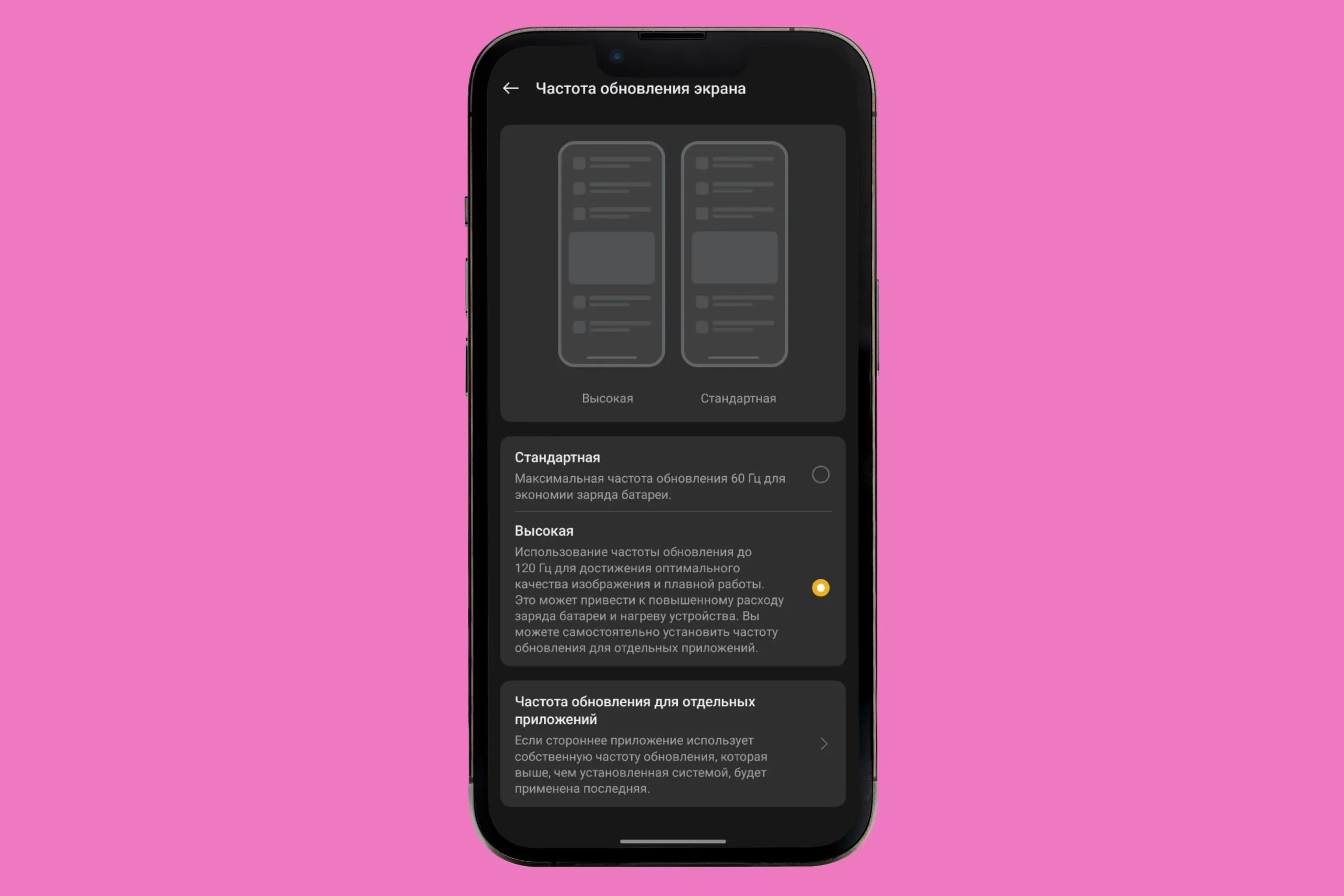 В Android 14 также можно установить частоту обновления для конкретных приложений. Например, если вы часто используете социальные сети, установите принудительное переключение частоты обновления на 60 Гц и экономьте заряд аккумулятора.