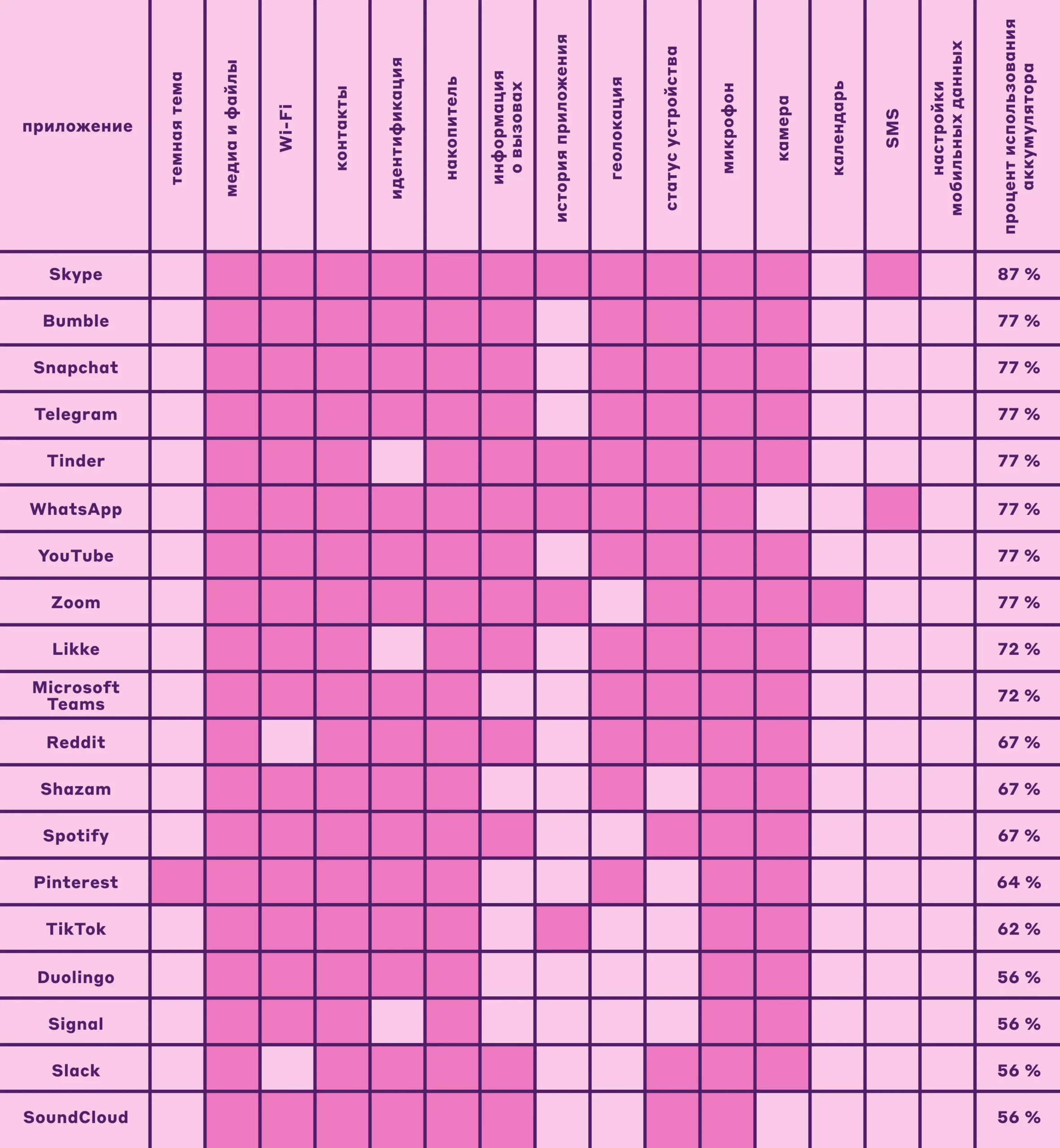 К соцсетям, не жалеющим ресурс аккумулятора, можно отнести VK, Tinder, Bumble, Snapchat. Их приложения активно потребляют ресурсы смартфона: гоняют данные на накопитель, используют геолокацию, собирают информацию о состоянии телефона, задействуют микрофон и камеры.