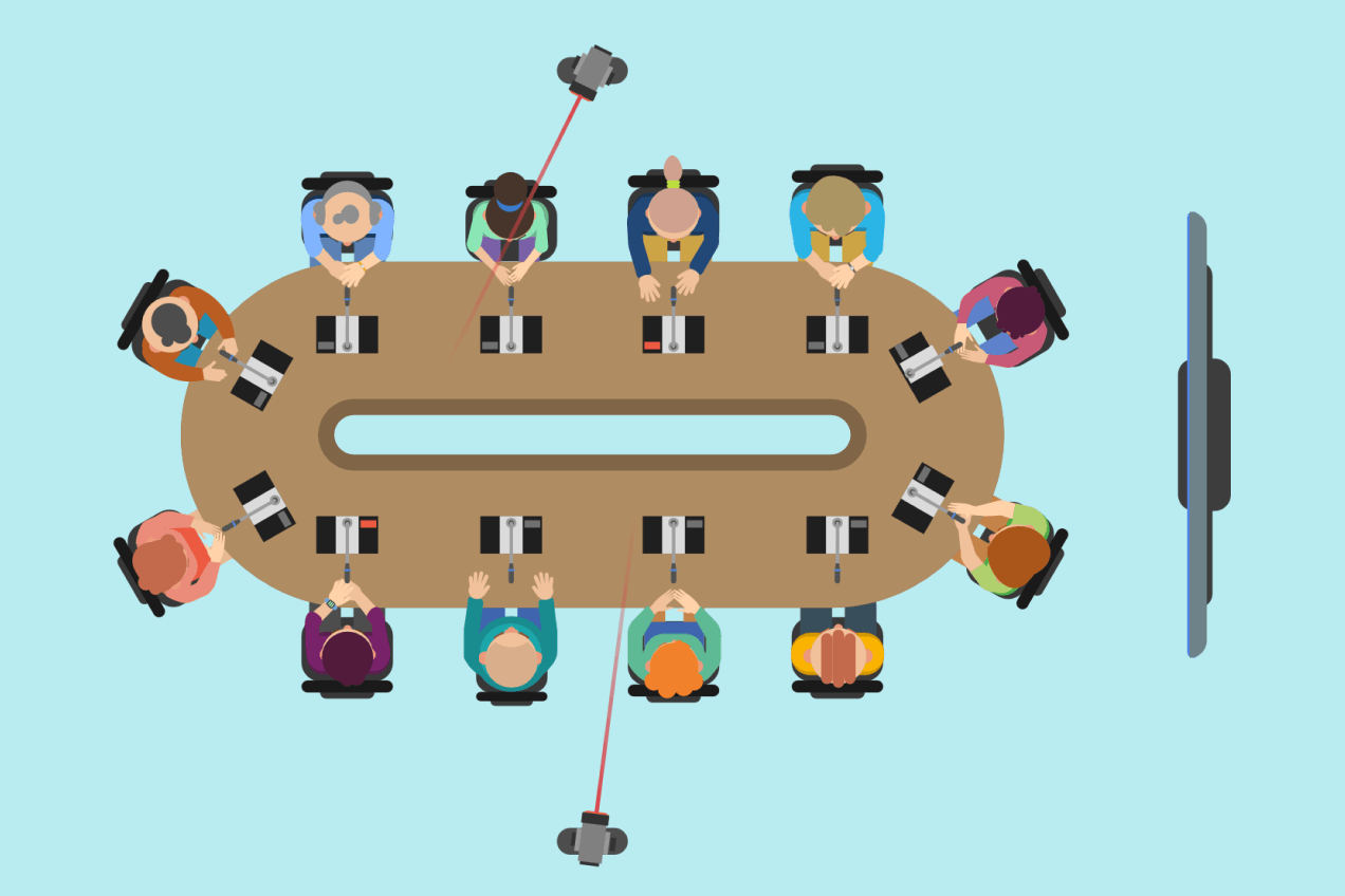 Две самые характерные проблемы во время видеосовещаний удаленных и локальных участников (причем проблемы и для тех и для других) — плохая слышимость и плохая видимость. Если камера настроена так, чтобы охватывать помещение целиком, все, что видят удаленные участники, — длинный ряд голов, сидящих за столом, на котором установлен один-единственный микрофон от офисного видеотерминала. Если заговорит кто-то, кто сидит достаточно далеко от микрофона, чтобы услышать его, придется выкручивать громкость до предела, да и то не факт, что это поможет. Стол, за которым располагаются участники ВКС, обычно перпендикулярен экрану ВКС-системы и ее камере. Именно поэтому без дополнительных мер выступающего толком не видно. Причем если с тем, что не видно лица говорящего, можно смириться, то невозможность разобрать речь — более серьезная вещь: по сути, нет никакого смысла присутствовать на совещании, если ты не слышишь, о чем говорят.