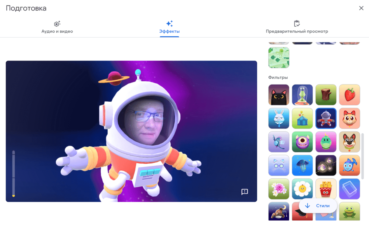 Замена фона на видео, маски, рожки и прочие развлечения — это технология дополненной реальности. Сейчас ее поддерживают практически все разработчики решений для ВКС. Она имеется не только в «классических» Google Meet и Zoom, но и в «Звонках» социальных сетей «ВКонтакте» и «Одноклассники».