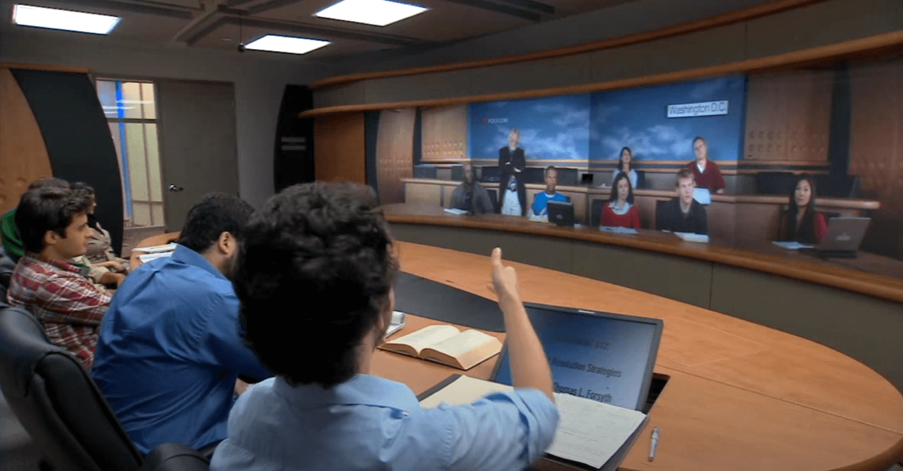 В основе своей телеприсутствие — это та же видеоконференцсвязь, но VIP-уровня. Участники конференции видят друг друга на больших экранах, достаточных для отображения в натуральную величину. Создается впечатление, что удаленные собеседники сидят на другой стороне стола, поэтому хорошо видна их мимика и язык тела.