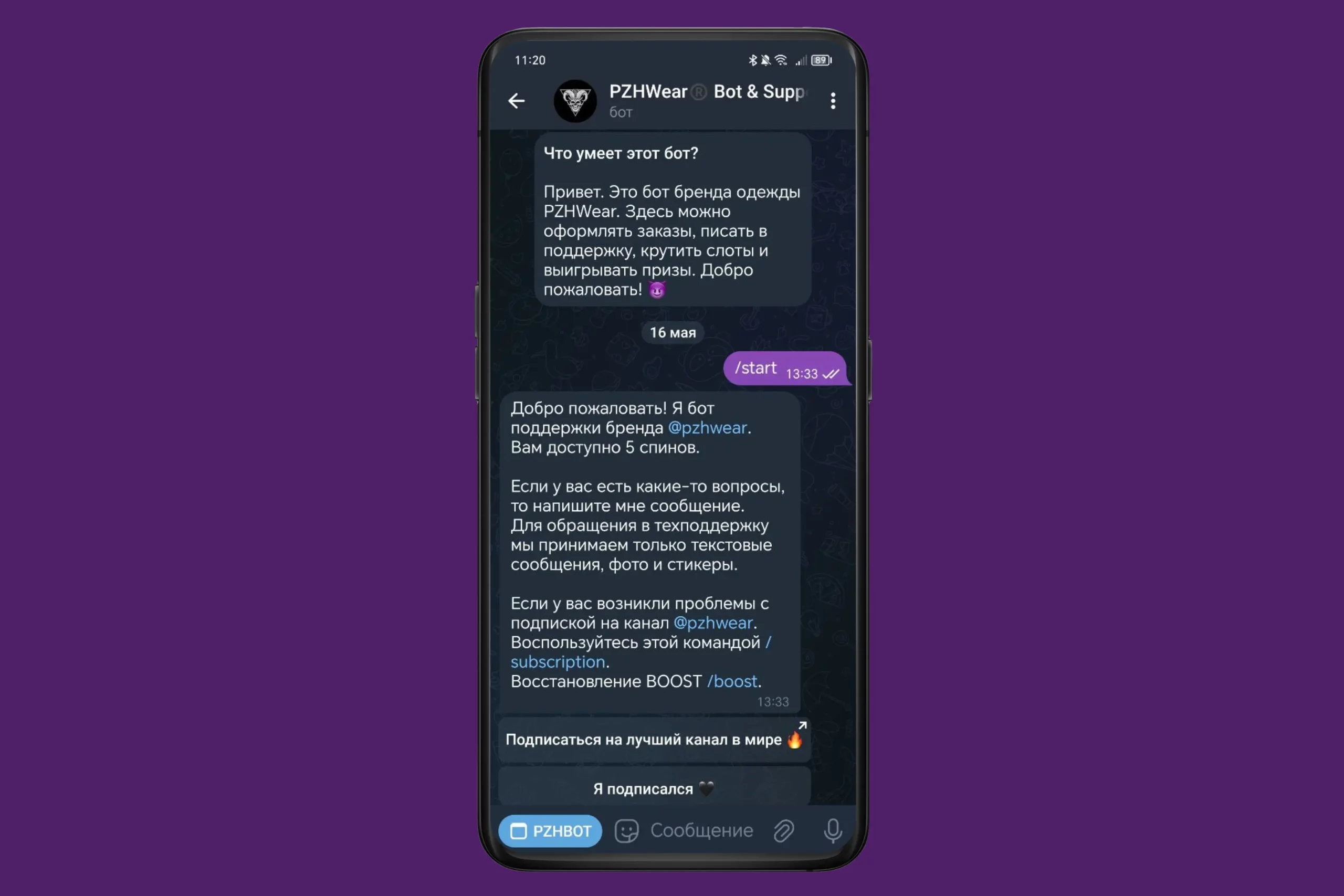 - Не переходить по внешним ссылкам и не скачивать подозрительные файлы, присланные ботом.